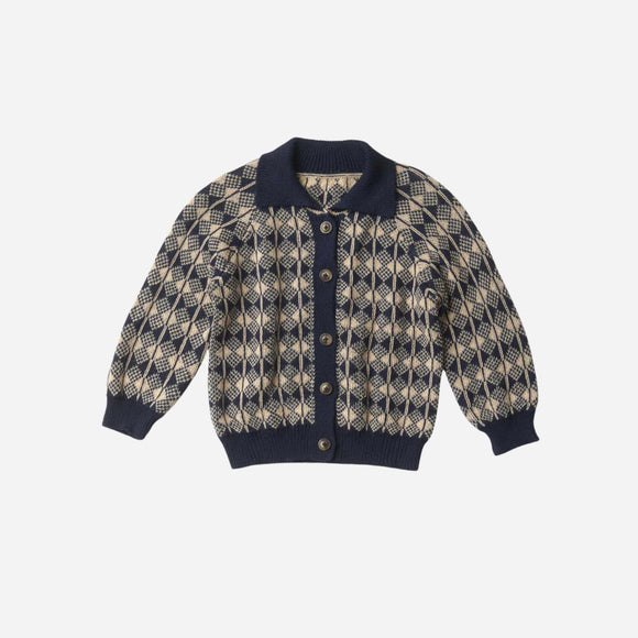 Rowan Cardigan - Ivory & Blue