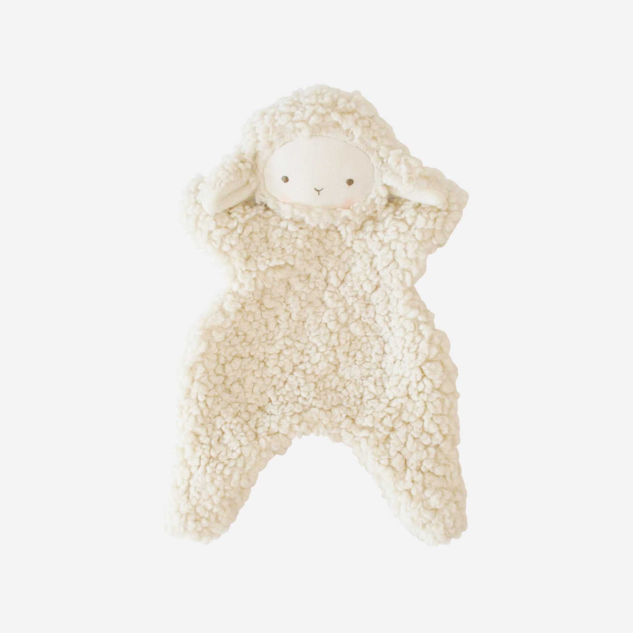 This gentle lamby comforter is designed to bring comfort from the very beginning. Crafted from plush ivory sherpa with a sweet embroidered face, Leni Lamby feels safe, familiar, and endlessly huggable. The floppy body drapes naturally over little arms, while lightly weighted feet add a grounding, cozy touch.