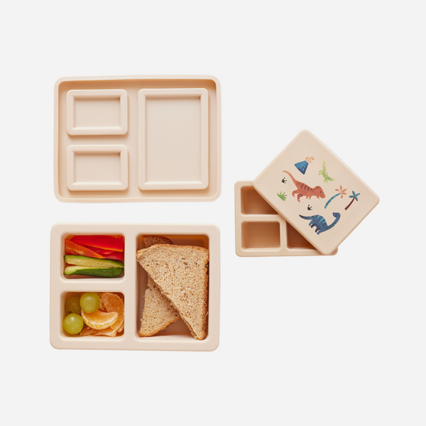 Silicone Mini Bento Box - Dinosaur / Warm Cream