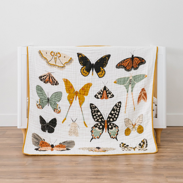 Add To BabylistIndulge in the charm of the Butterfly Collector Cotton Muslin Quilt by Clementine Kids – a delightful addition to your baby's world. Here's why it's a must-have: