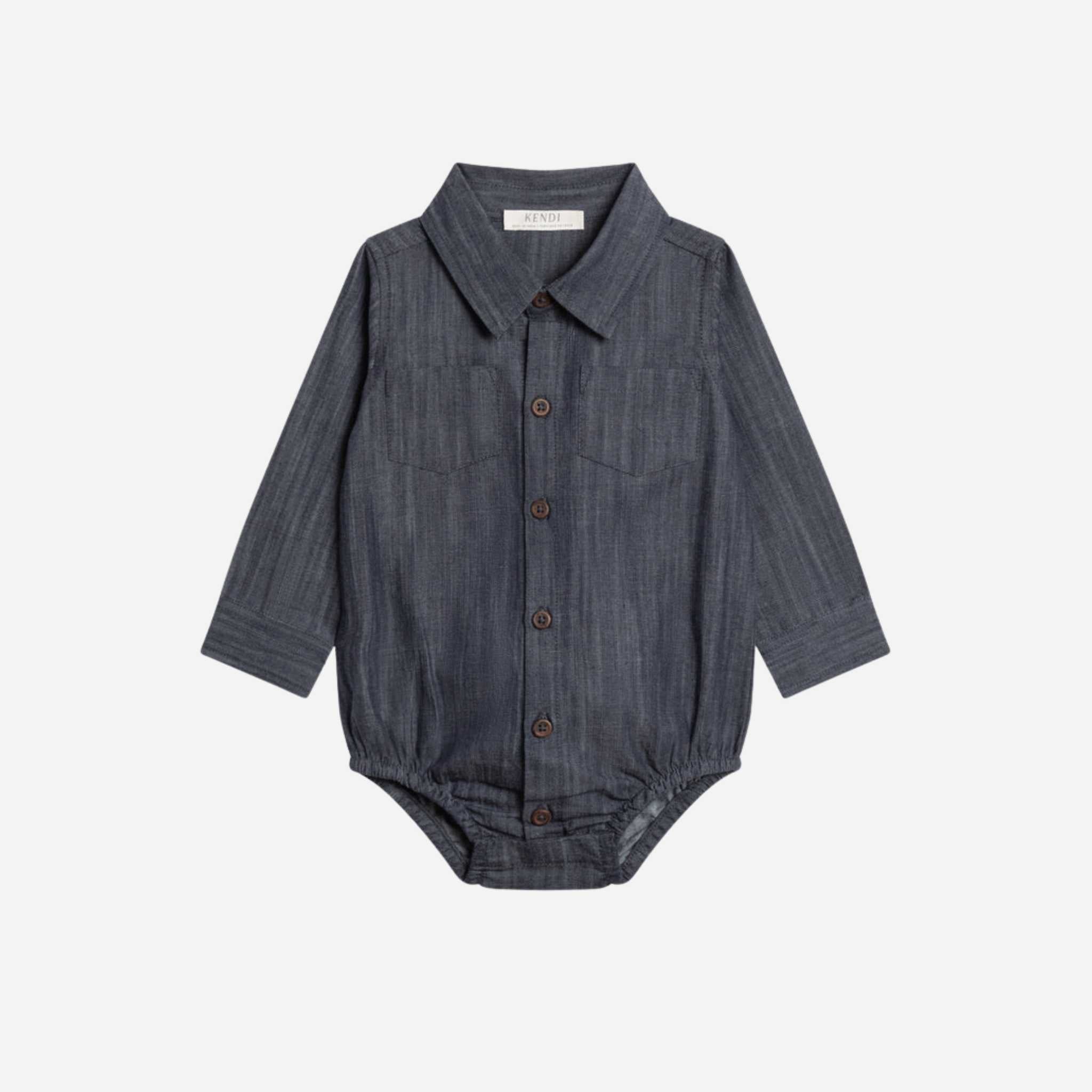 Classic style meets everyday comfort in the Flint Chambray Collared Bodysuit. Soft, breathable, and thoughtfully designed, it’s perfect for little ones’ daily adventures or special occasions.