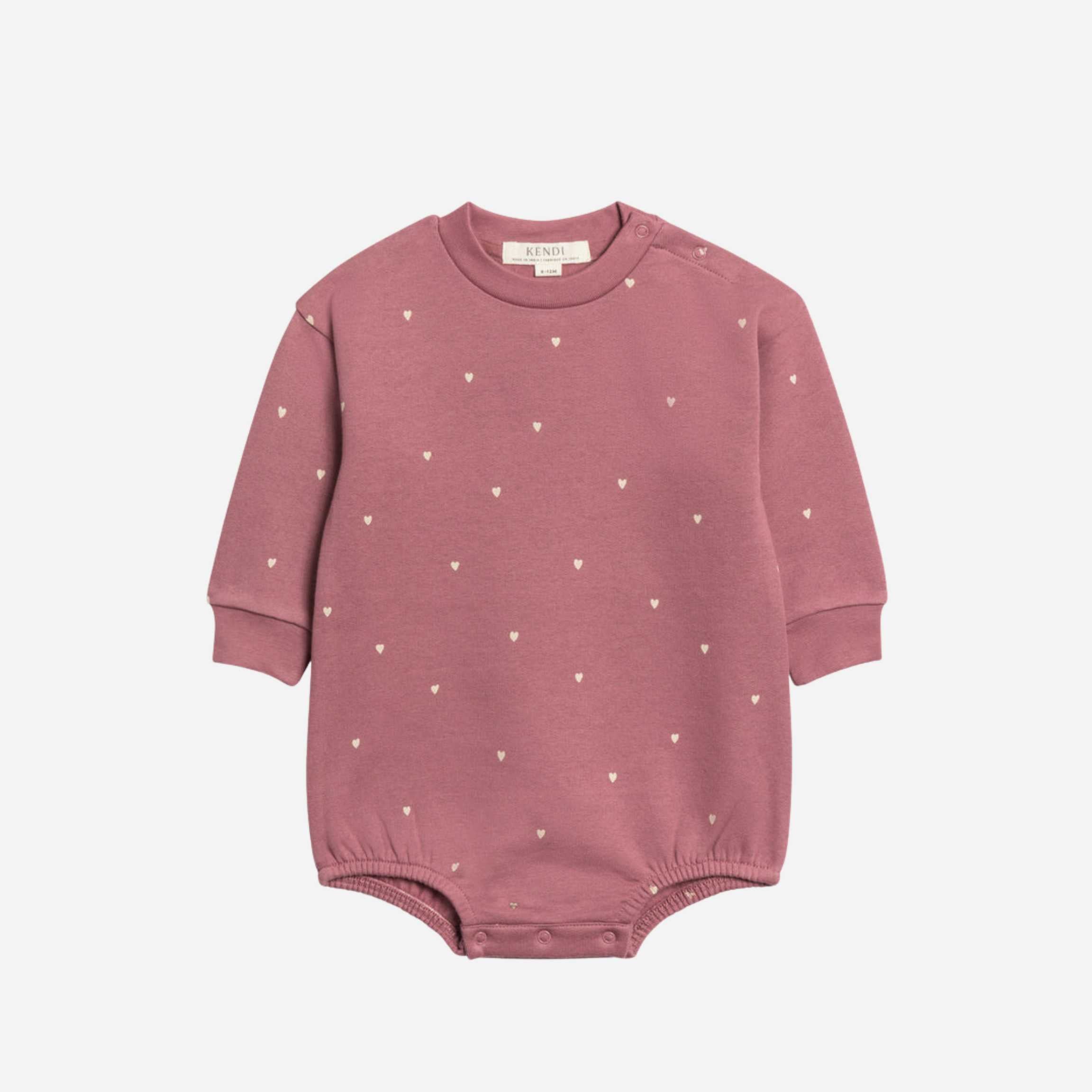 Jamie Fleece Bubble Romper - Hearts / Raspberry