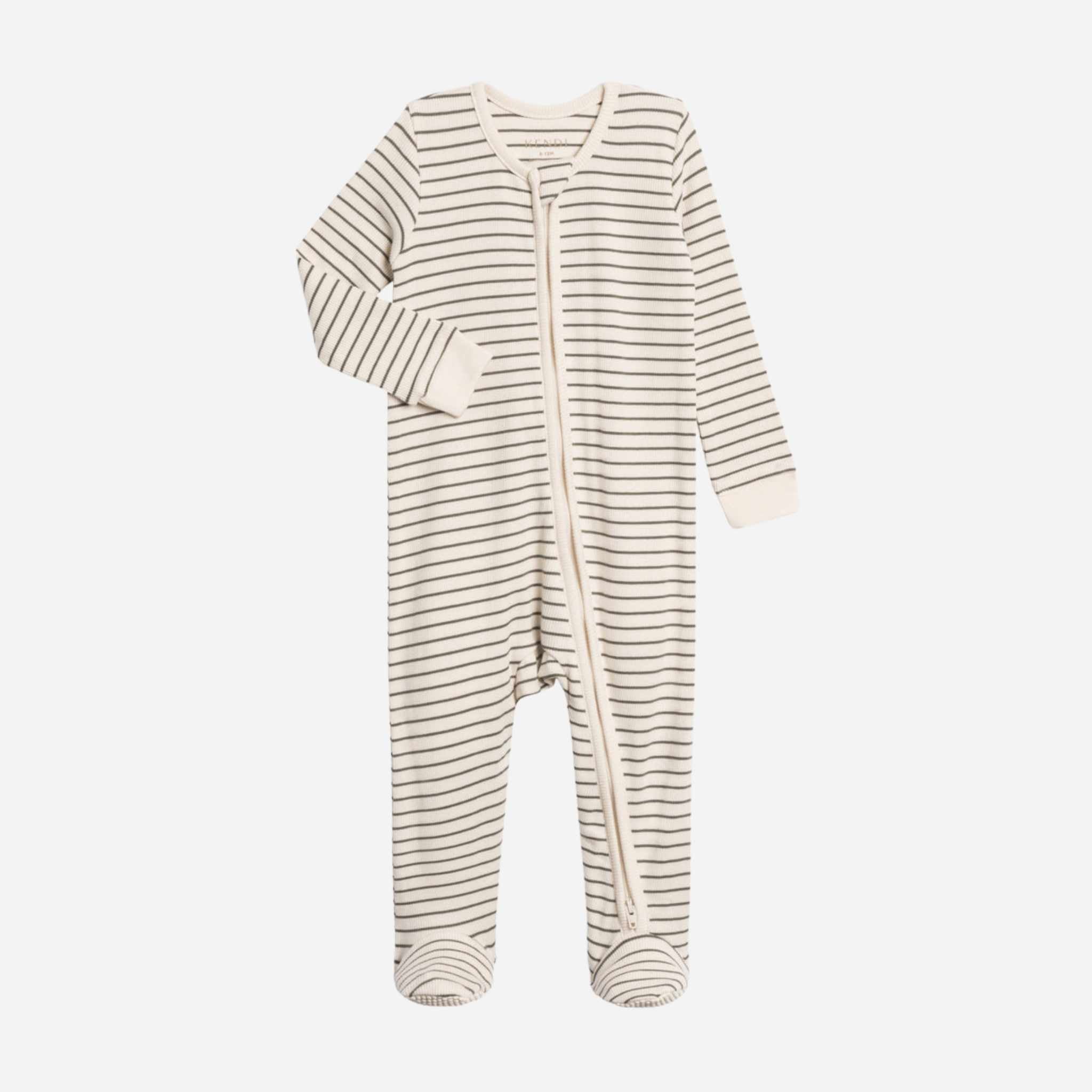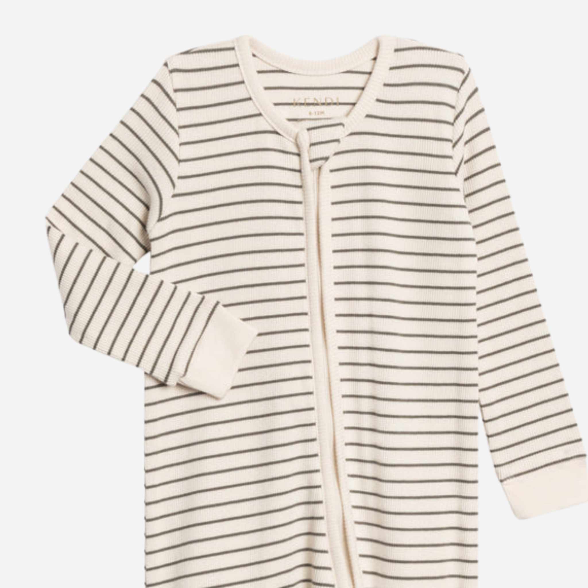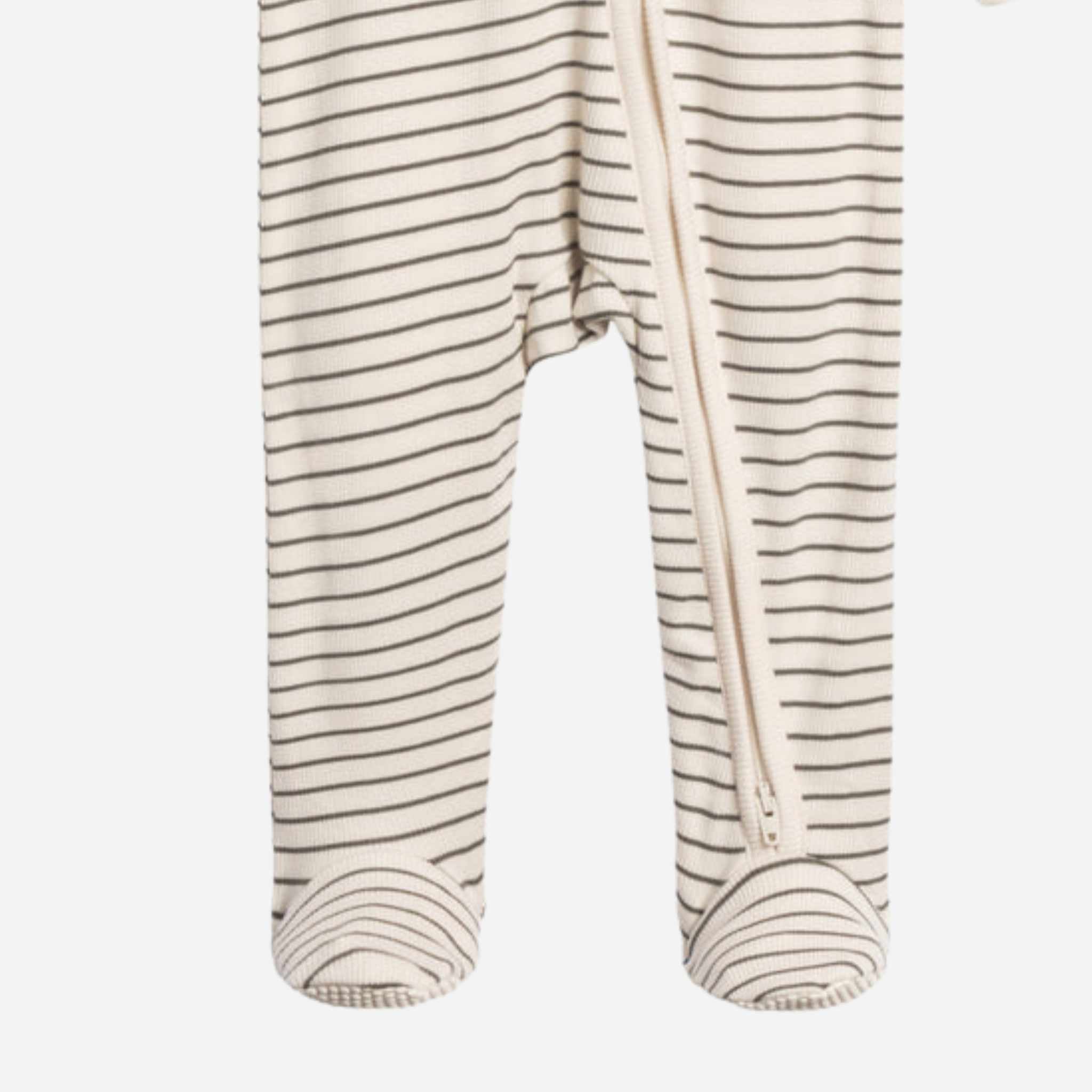 Kit Ribbed Zipper Footed Sleeper - Olive Stripe