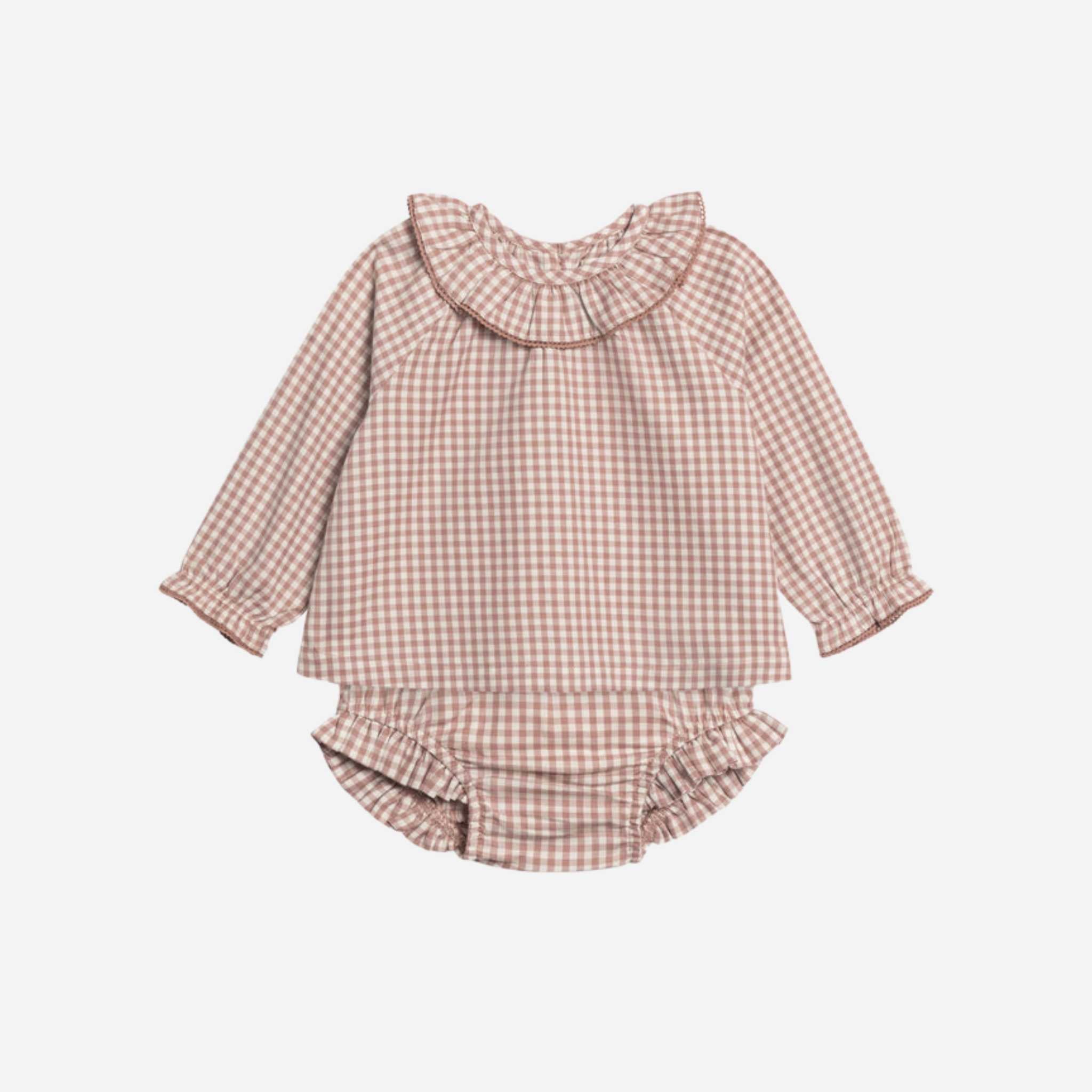 Poplin Ruffle Collar Shirt & Bloomer Set - Mauve Gingham