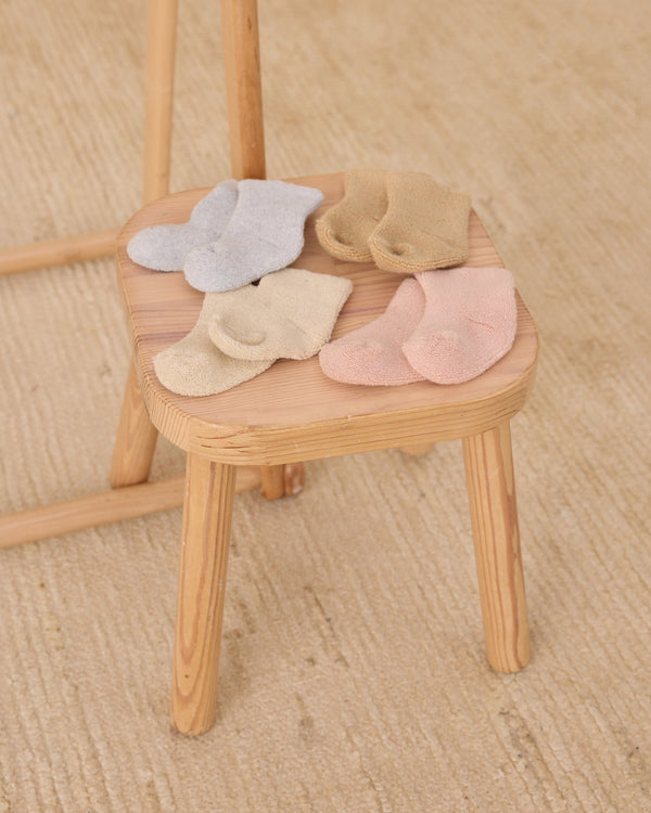 Available in three beautiful hues—Fog, Ivory, and Petal—they pair perfectly with Quincy Mae’s beloved knitwear and make a sweet little add-on to any baby gift.