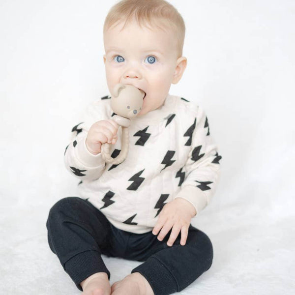 Bear Sweetie Rattle by Itzy Ritzy brings together the best of playtime fun and teething relief in one irresistible design. This sweet bear-shaped rattle is made from buttery-soft, flexible silicone that’s gentle on sore gums, while its playful textures invite curious little hands (and mouths!) to explore. Every shake rewards baby with a soft, happy rattle sound—helping them discover the magic of cause-and-effect.