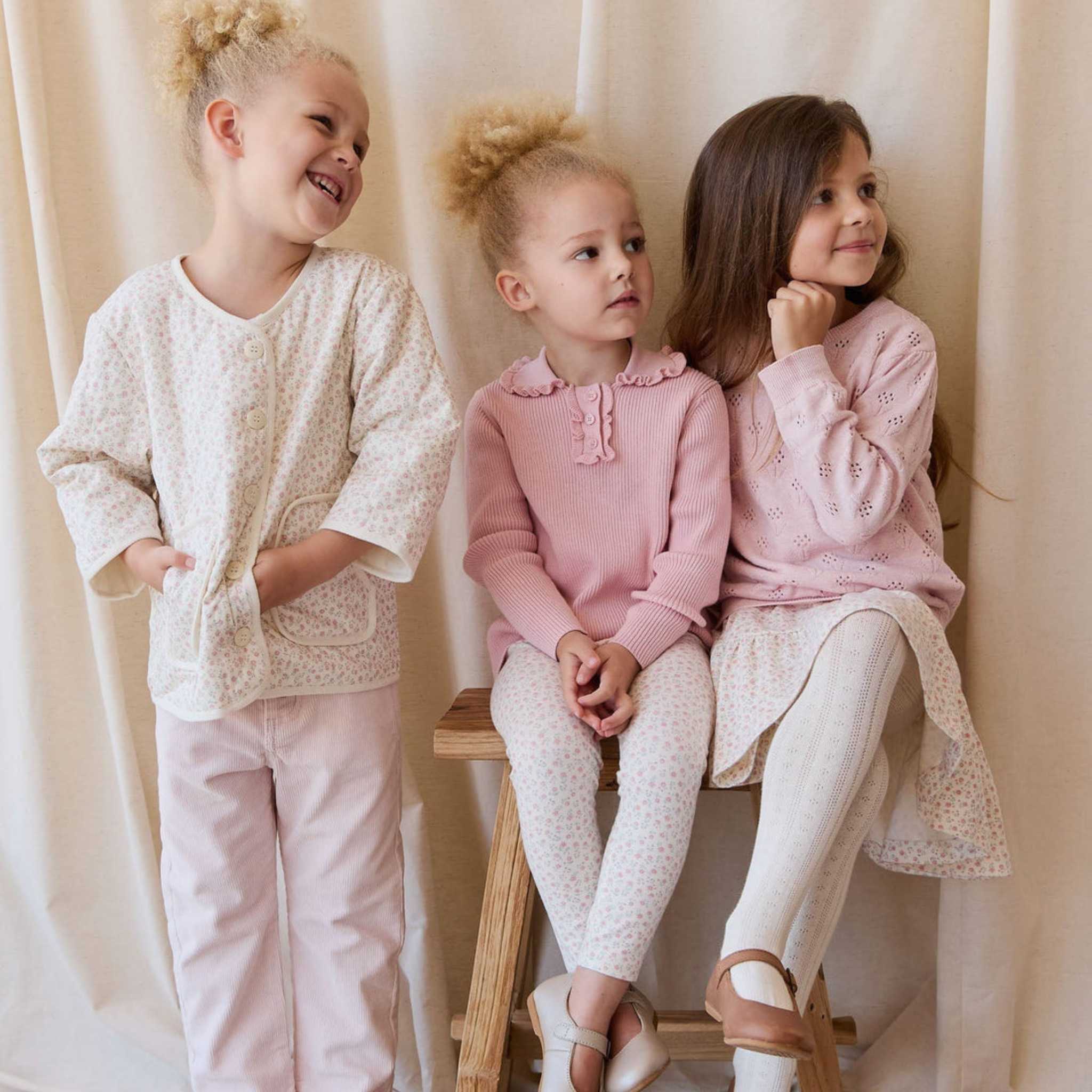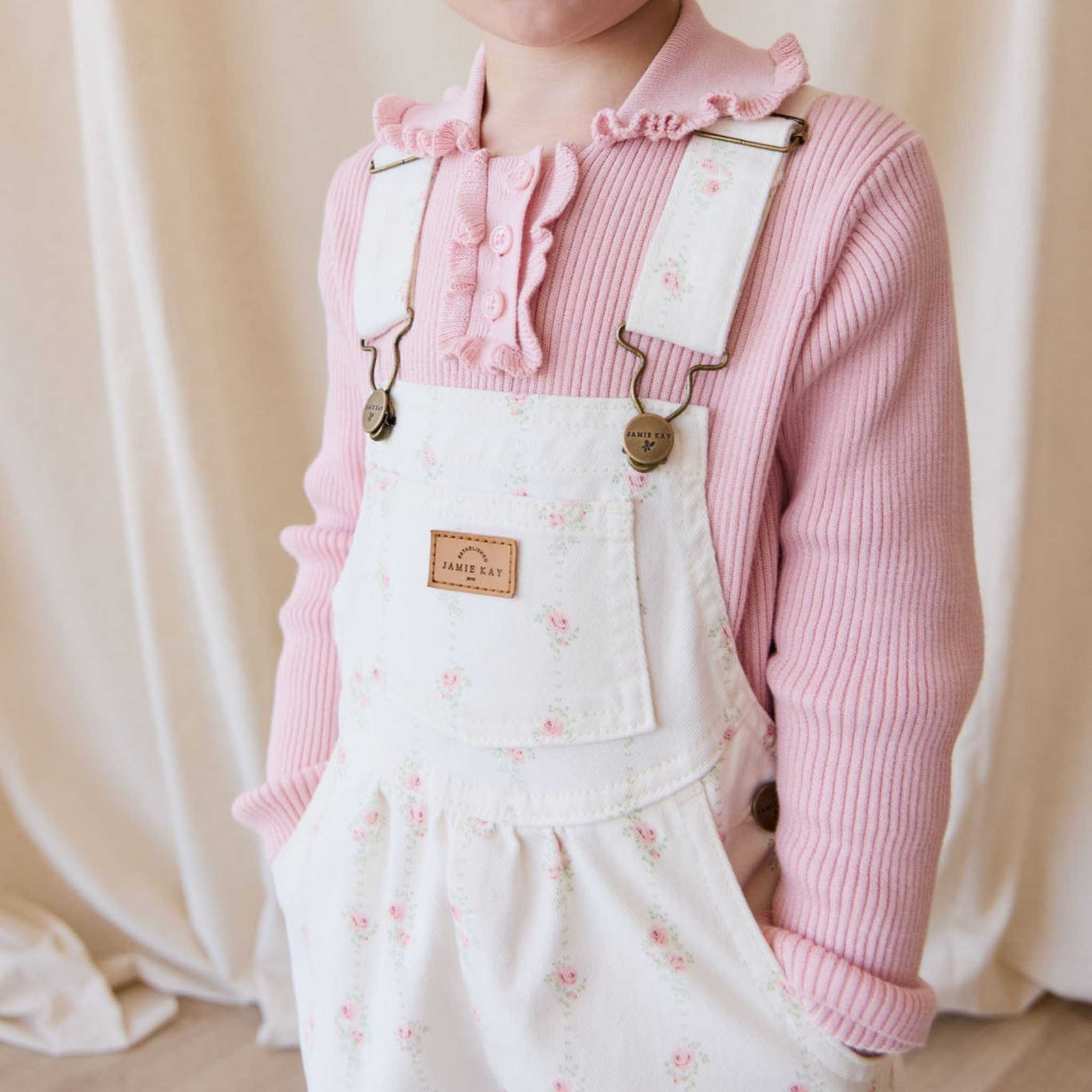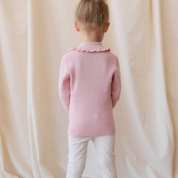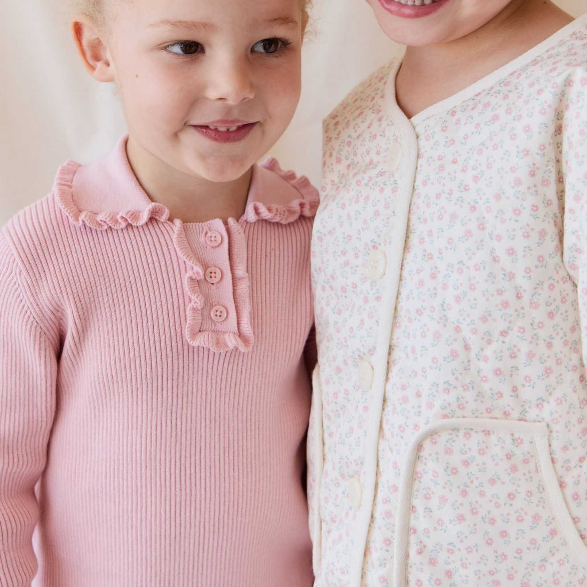 Sweetly refined and effortlessly wearable, the Cleo Top in Trinket is a beautifully knitted essential with timeless appeal. Designed in a soft blush hue, it features a delicate ribbed texture and ruffled collar for a touch of everyday elegance. Perfect for layering under overalls or pairing with skirts and bloomers, it brings comfort and charm to every outfit.