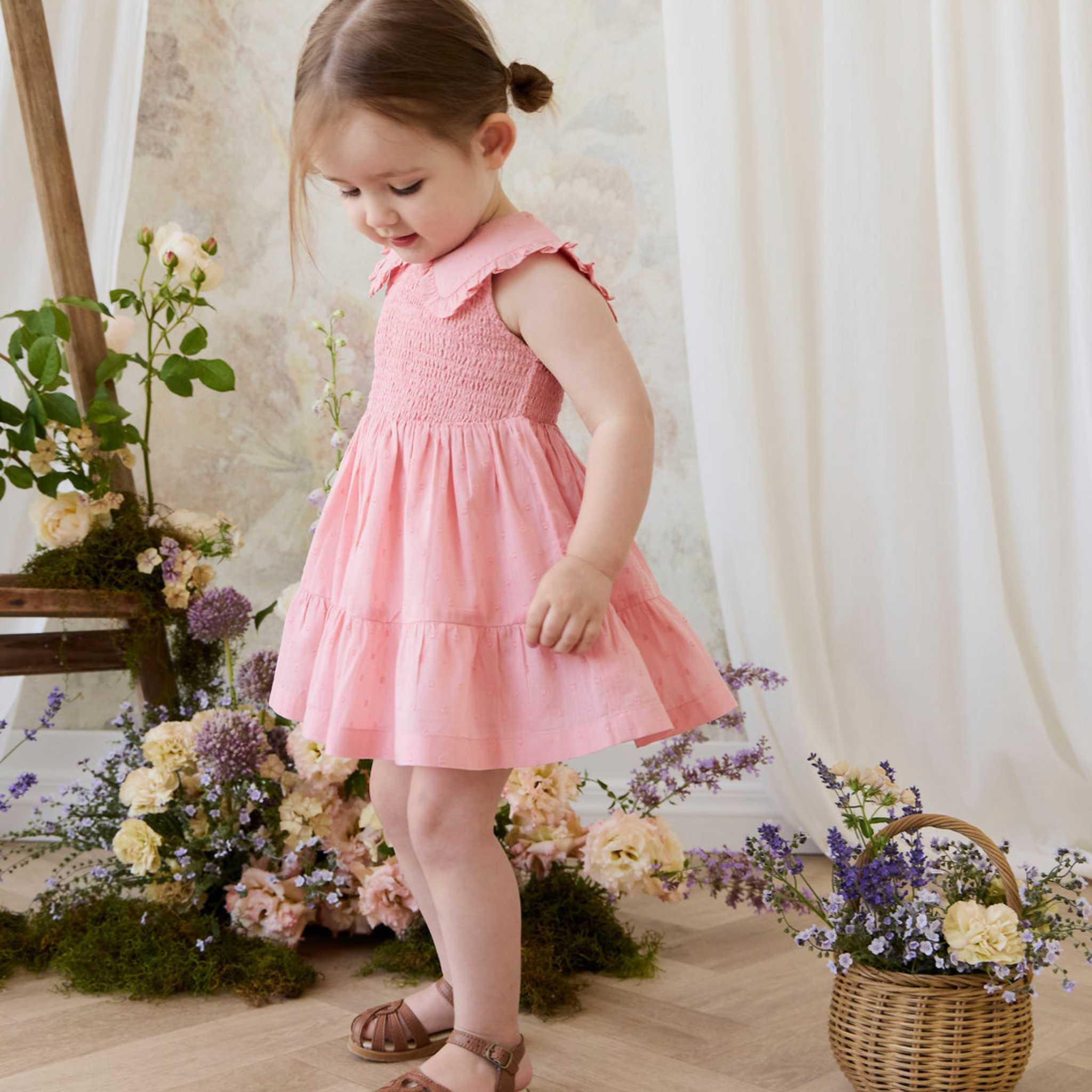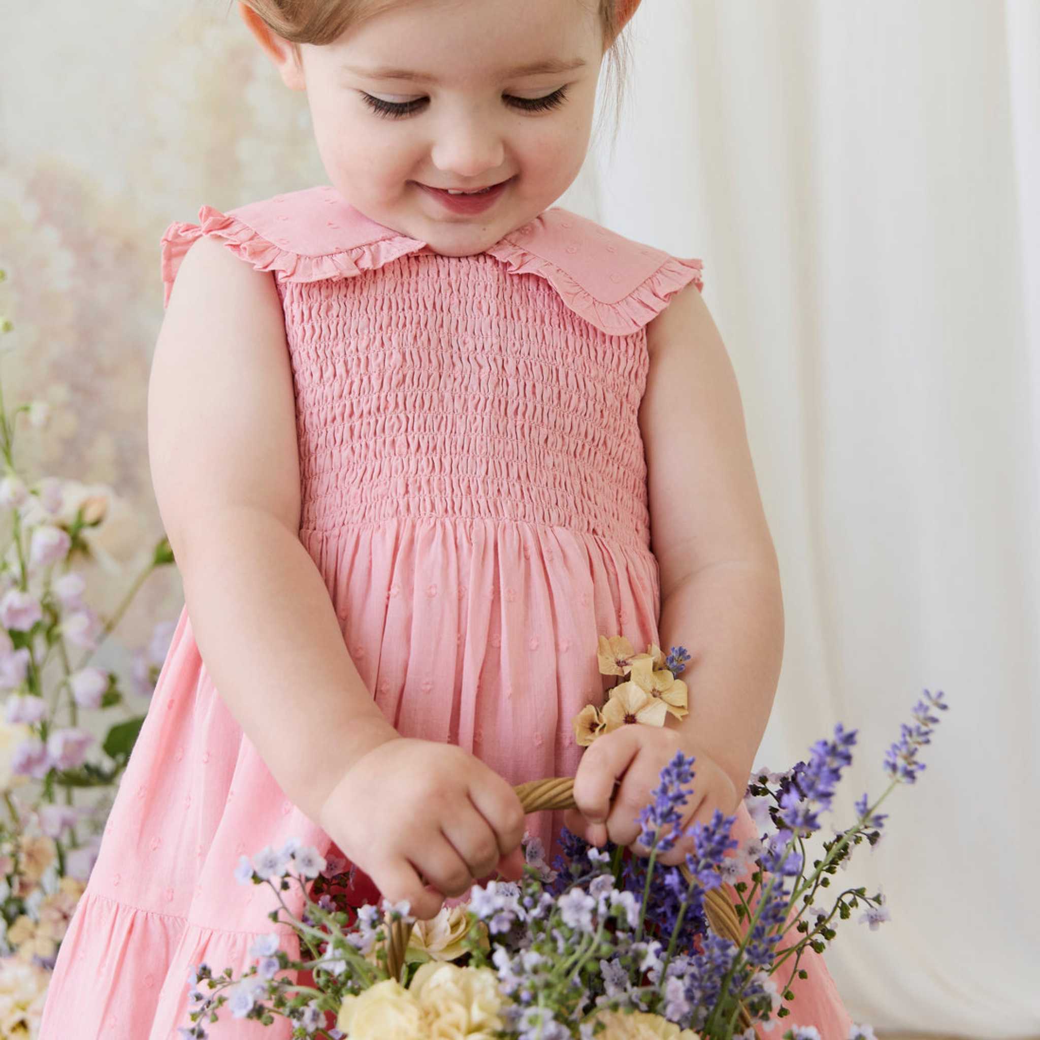 Add a touch of timeless elegance to your little one’s wardrobe with the Claudine Dress in Swiss Pink. With its soft silhouette and vintage-inspired details, this beautiful piece feels both special and effortlessly wearable—perfect for everyday sweetness or memorable occasions.
