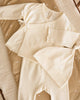 Available in three gentle hues—Fog, Petal, and Ivory—it pairs perfectly with Quincy Mae footies, sets, and swaddles for a complete, cozy look.