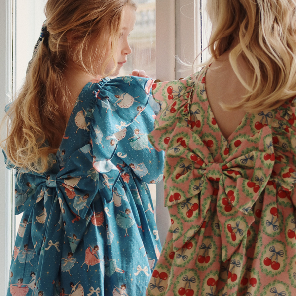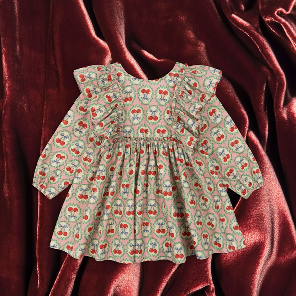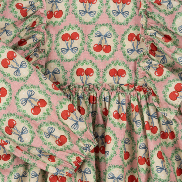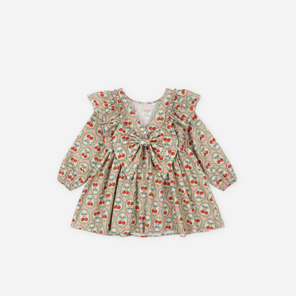 Evia Longsleeve Bow Dress GOTS - Cherry Bow