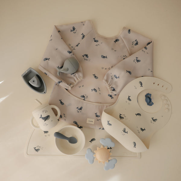 Mealtimes, art time, and every messy moment in between feel a little easier with this thoughtfully designed long sleeve bib. Lightweight and water-resistant, it offers full coverage to keep outfits clean and little ones comfortable. The wide pocket catches drips and crumbs, while the soft Velcro closure keeps everything in place.