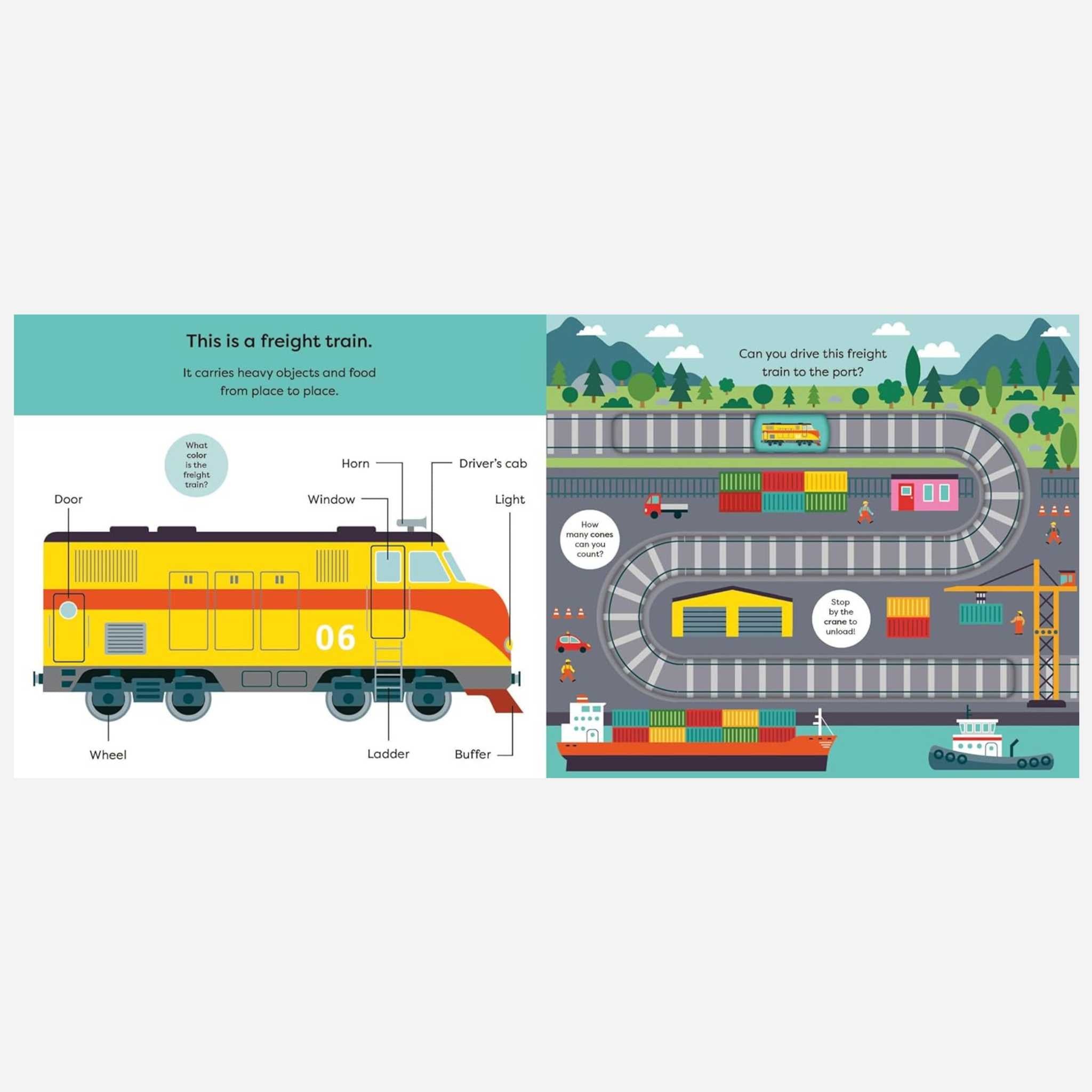 - Interactive slider features: Durable sliders allow toddlers to move each train along its track, bringing every page to life.