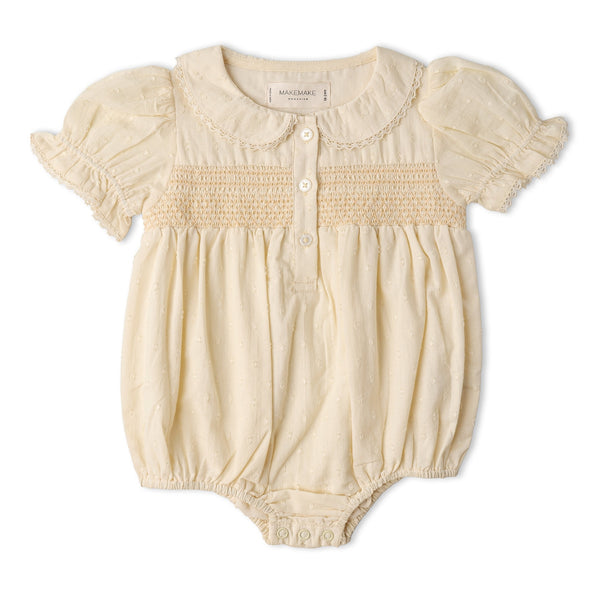 Bright, beautiful, and consciously crafted — the Makemake Organics Organic Smocked Button Romper in Butter Yellow is the newest reason to love getting your baby dressed. Made from GOTS-certified organic cotton, this romper is free from harsh chemicals and synthetic materials, making it perfectly gentle for delicate baby skin. The cheerful butter yellow hue and classic smocked detailing bring a timeless warmth to your little one's wardrobe, while the easy button closure makes every wear effortless.
