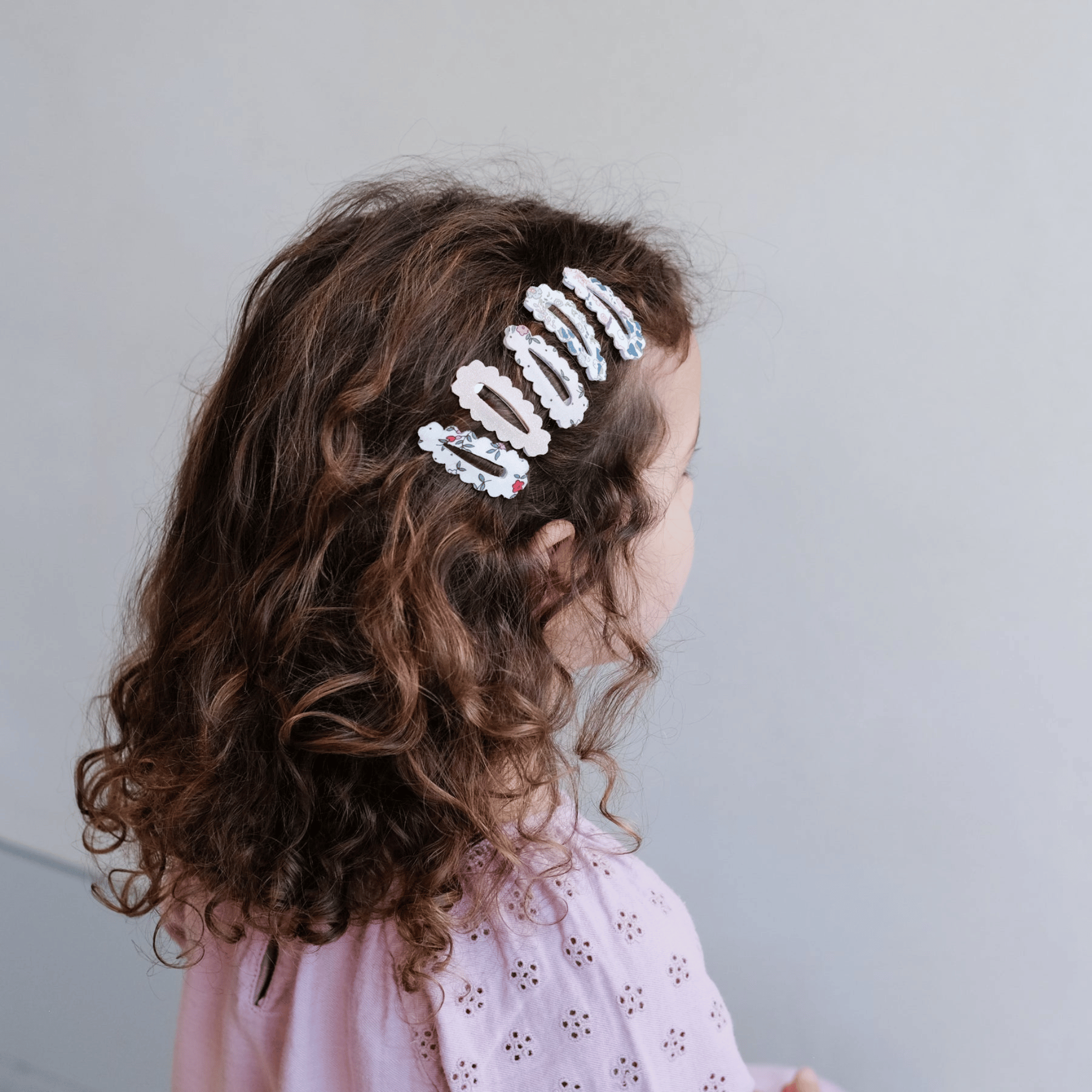 Add To BabylistDelicate and darling, these mini clips bring a soft floral touch to everyday hairstyles. The scalloped edges and pretty fabric patterns make them perfect for little ones with fine hair who love a sweet, subtle style.