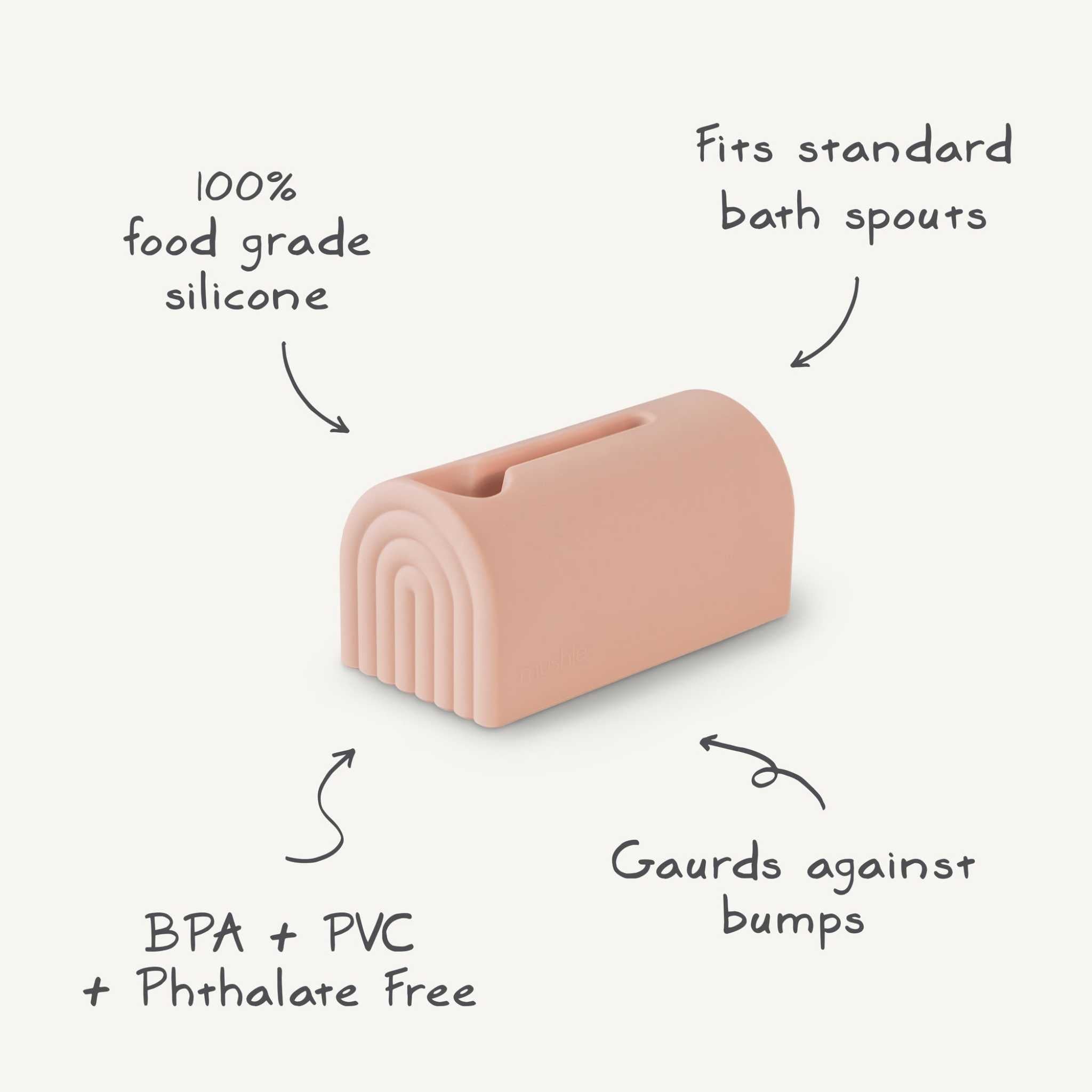 Make bath time safer—and more playful—with this soft, protective spout cover. Designed to cushion hard surfaces, it guards little heads and hands against bumps while adding a touch of fun with cheerful rainbow arches. Easy to attach to most standard tub spouts, it keeps safety front and center so kids can splash and play with confidence.