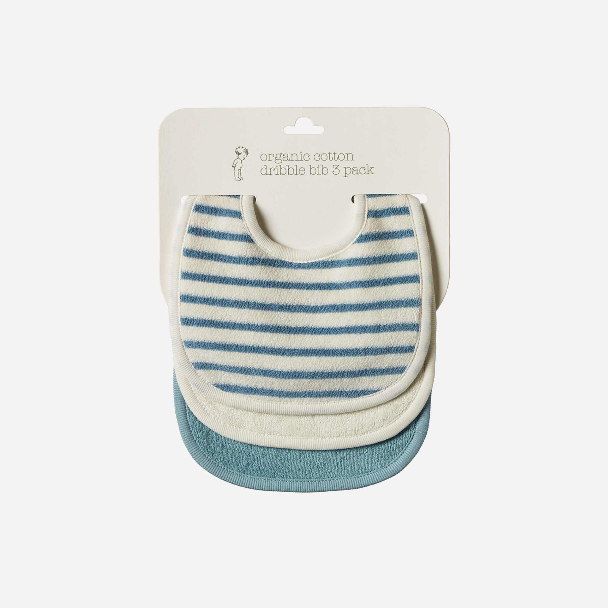 The sweetest little essentials for everyday messes. This pack of three dribble bibs is made from soft, absorbent organic cotton terry towelling with gentle rib binding. Sized just right for teething and dribbly days, these bibs keep outfits dry while adding a simple touch of sweetness to daily wear.