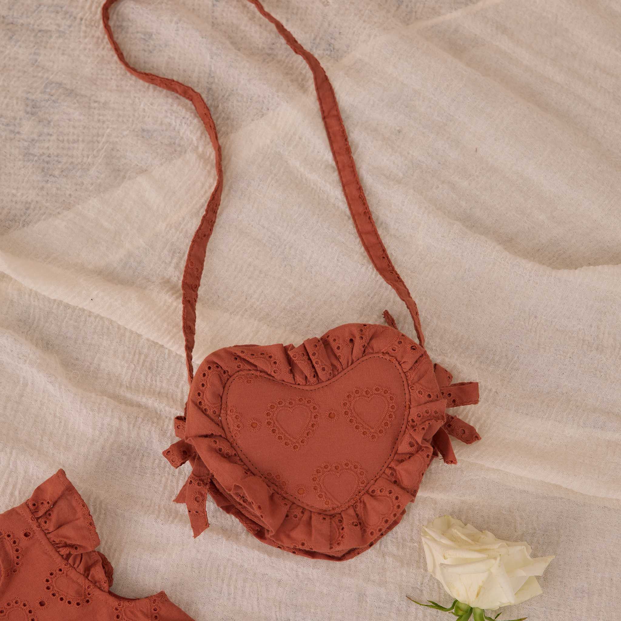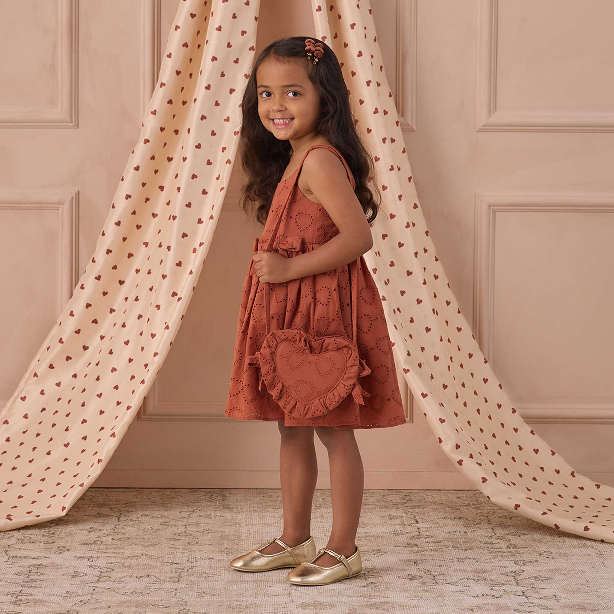 Sweet, playful, and perfectly sized for little hands, the Heart Purse in Red by Noralee is a charming accessory designed to hold tiny treasures and complete special outfits with ease. Thoughtfully made with timeless details, it’s a piece little ones will love to carry again and again.