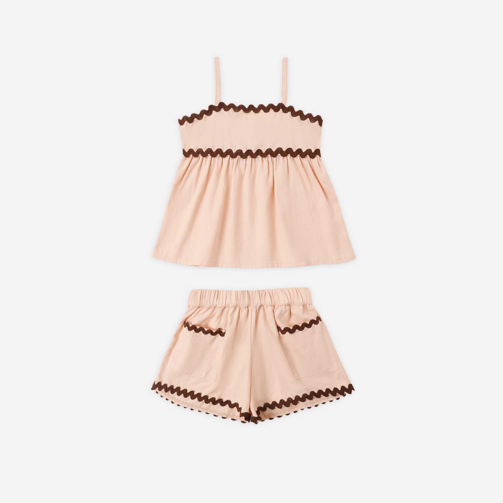 Light, airy, and effortlessly sweet, the Ric Rac Set is a go-to favorite for warm days, playful adventures, and everyday moments. With whimsical trim details and a relaxed silhouette, this matching set balances comfort, style, and timeless charm.