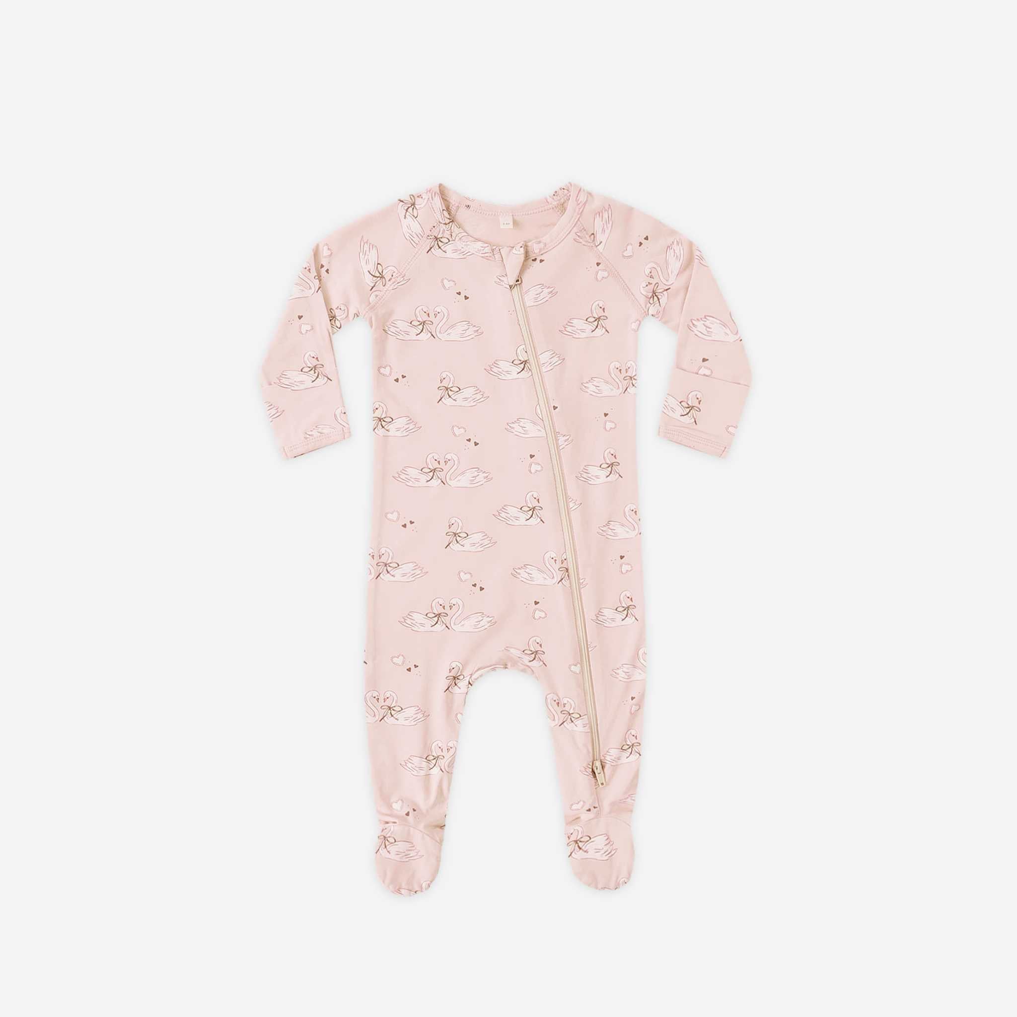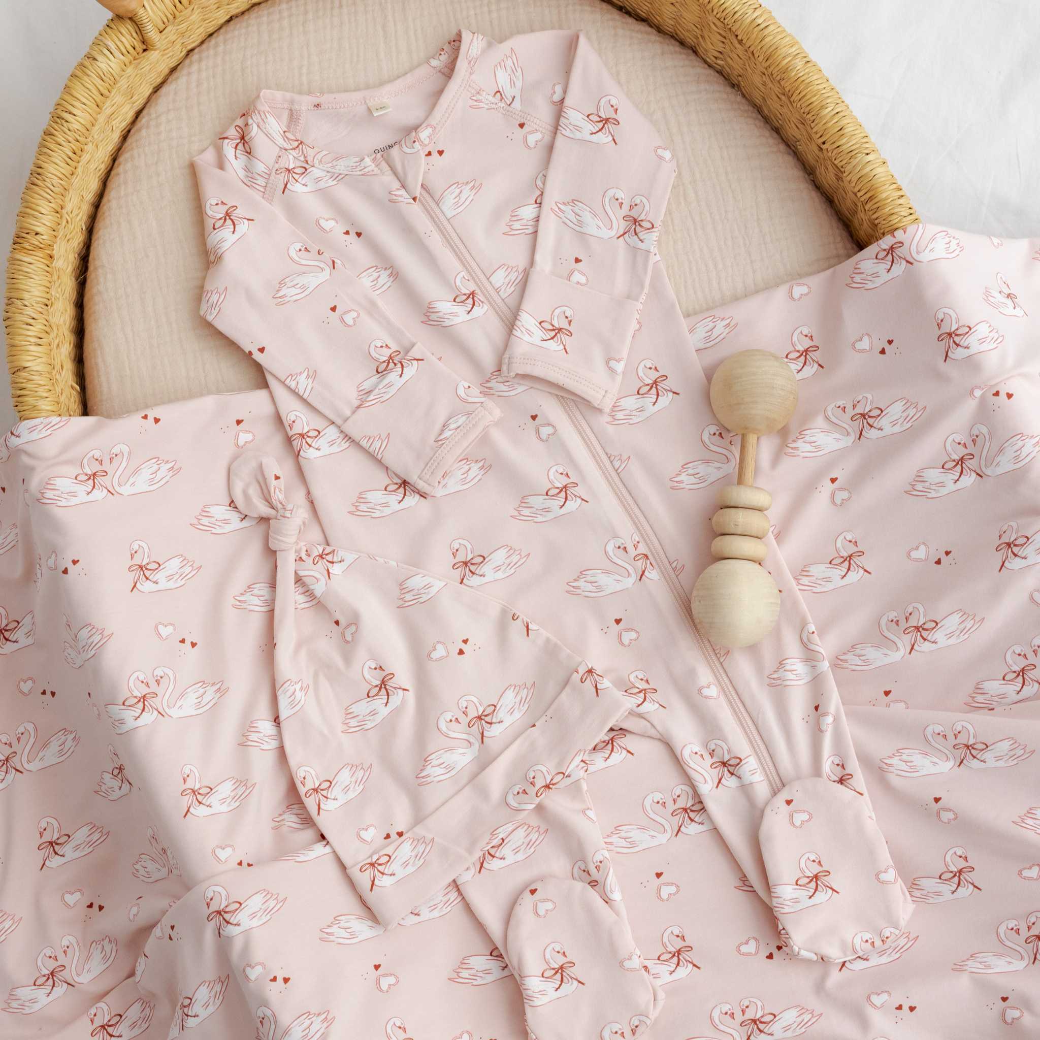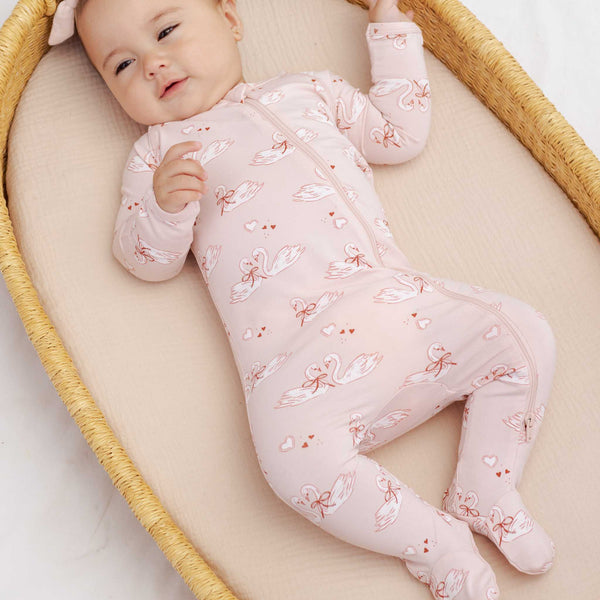 Wrap your little one in softness with this cozy bamboo footie, designed for comfort, ease, and a touch of Valentine’s charm. The delicate swan print makes it perfect for celebrating the season—or simply adding sweetness to everyday moments.