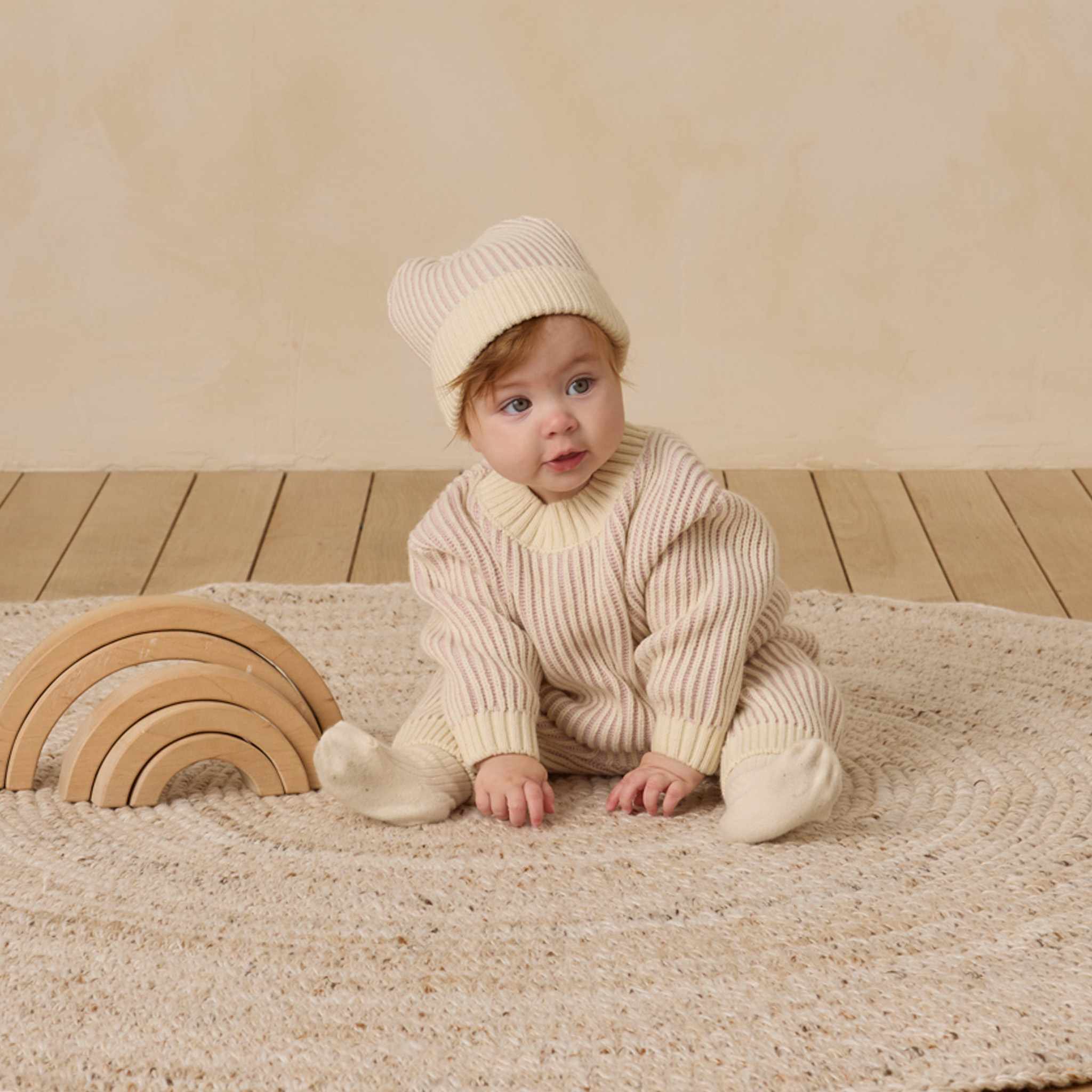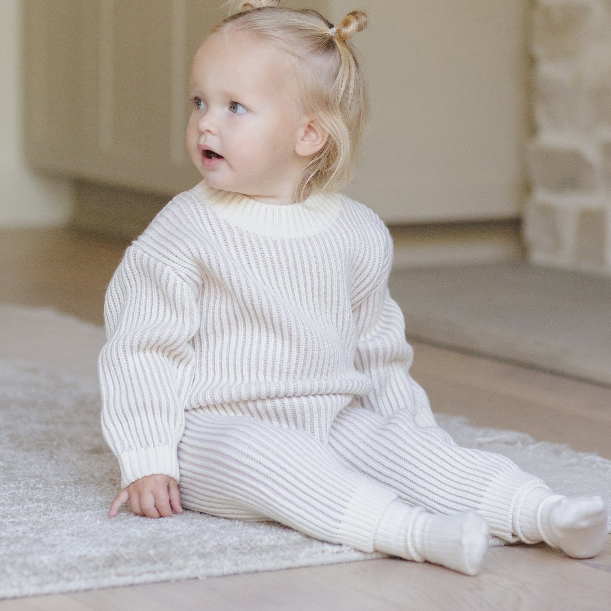Cozy, cute, and made for everyday play, these chunky knit pants bring warmth and style to your little one’s wardrobe. The soft lilac hue feels fresh and sweet, while the contrast ribbing and fixed tie add just the right touch of detail. Pair them with the Relaxed Knit Sweater for a perfectly matched set.