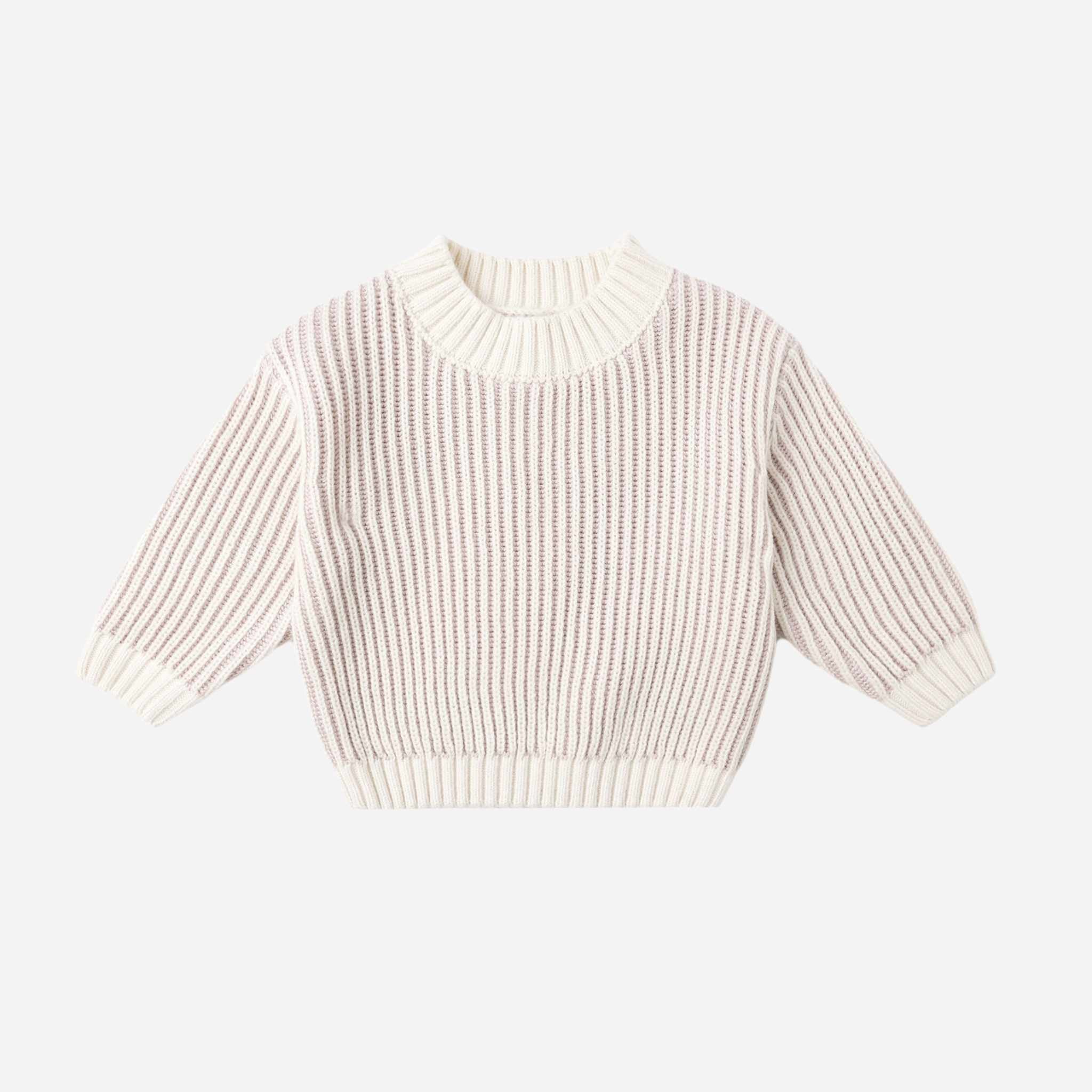 Soft, sweet, and ready for layering, this relaxed knit sweater is a seasonal staple. Designed with contrast ribbing for a touch of charm, it’s perfectly balanced between cozy and breathable—an everyday favorite you’ll reach for again and again. Pair it with the Chunky Knit Pants for the dreamiest matching set.
