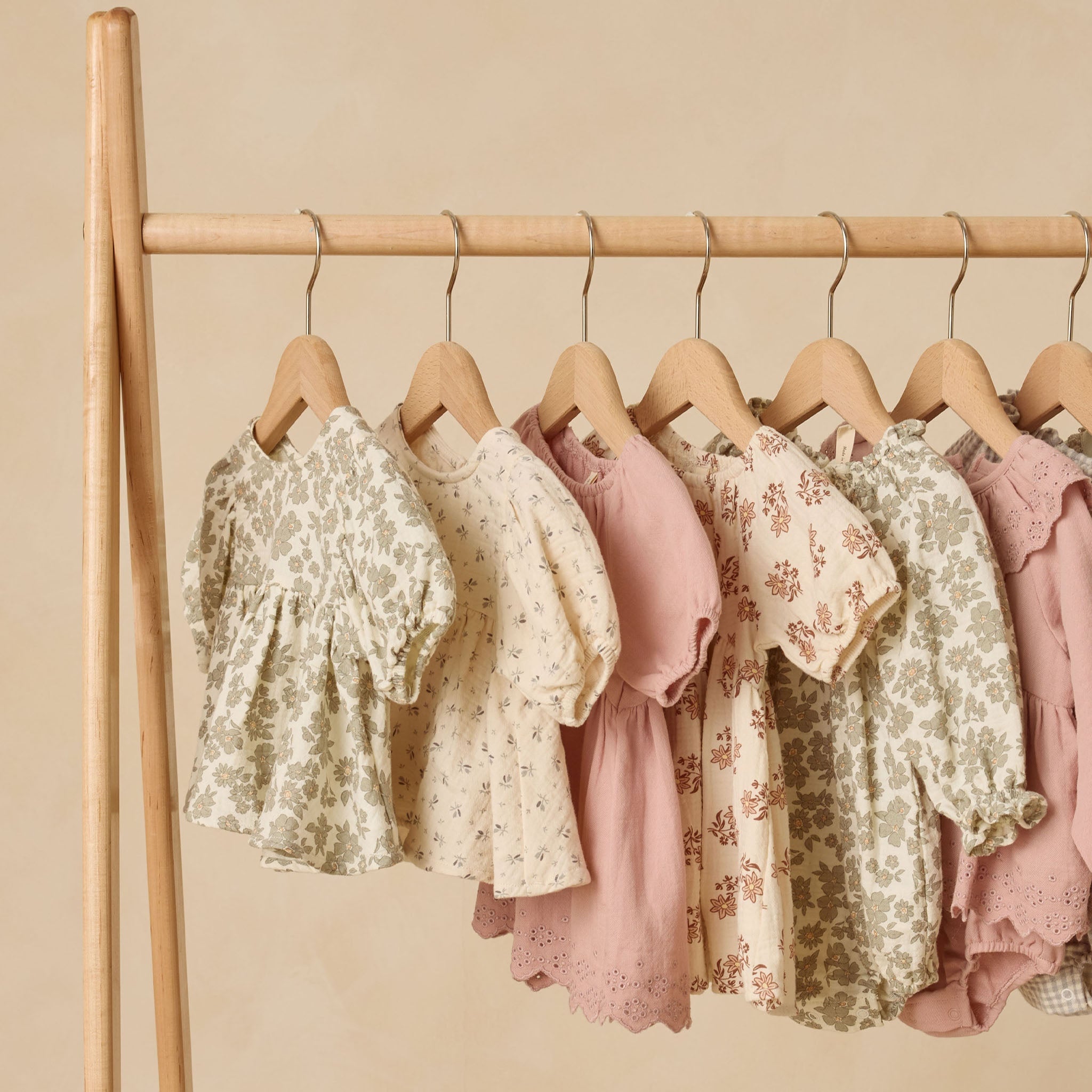 Timeless floral details: Features Quincy Mae’s 'bluebell' print on a soft natural hue—an understated palette with a vintage feel