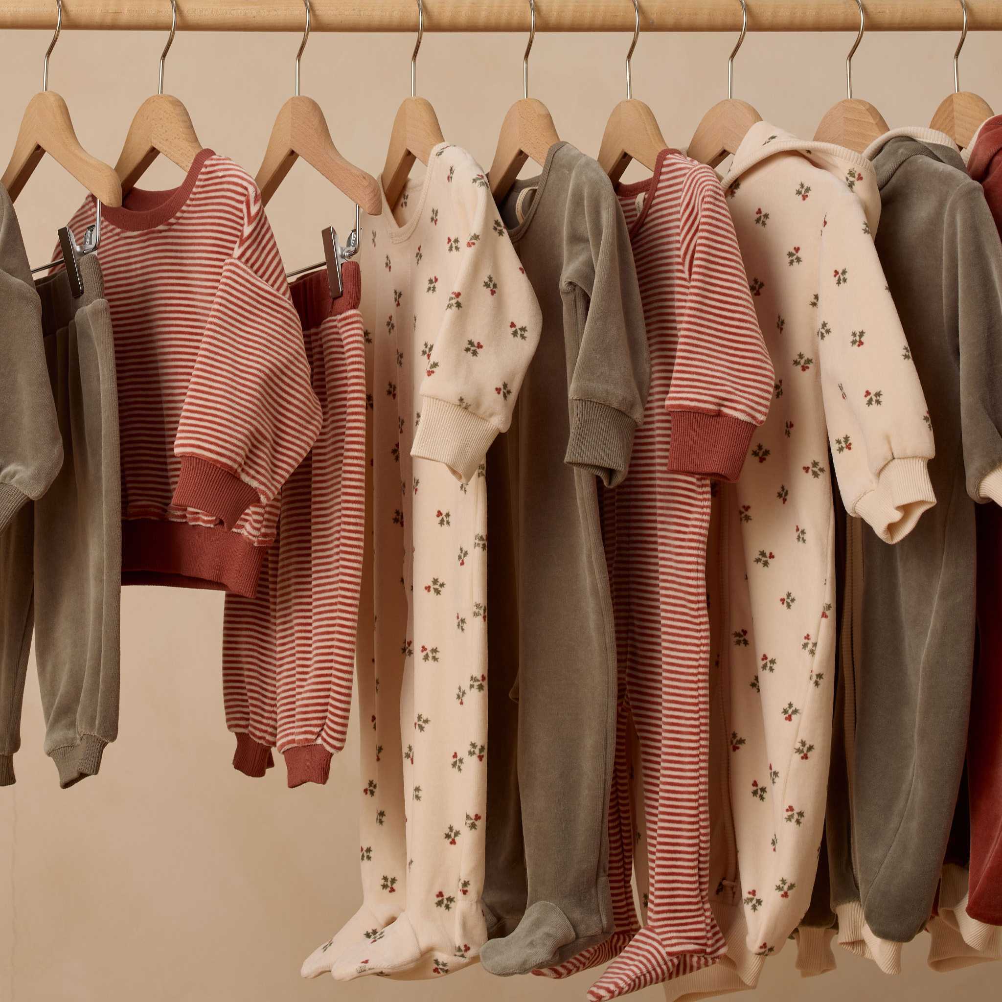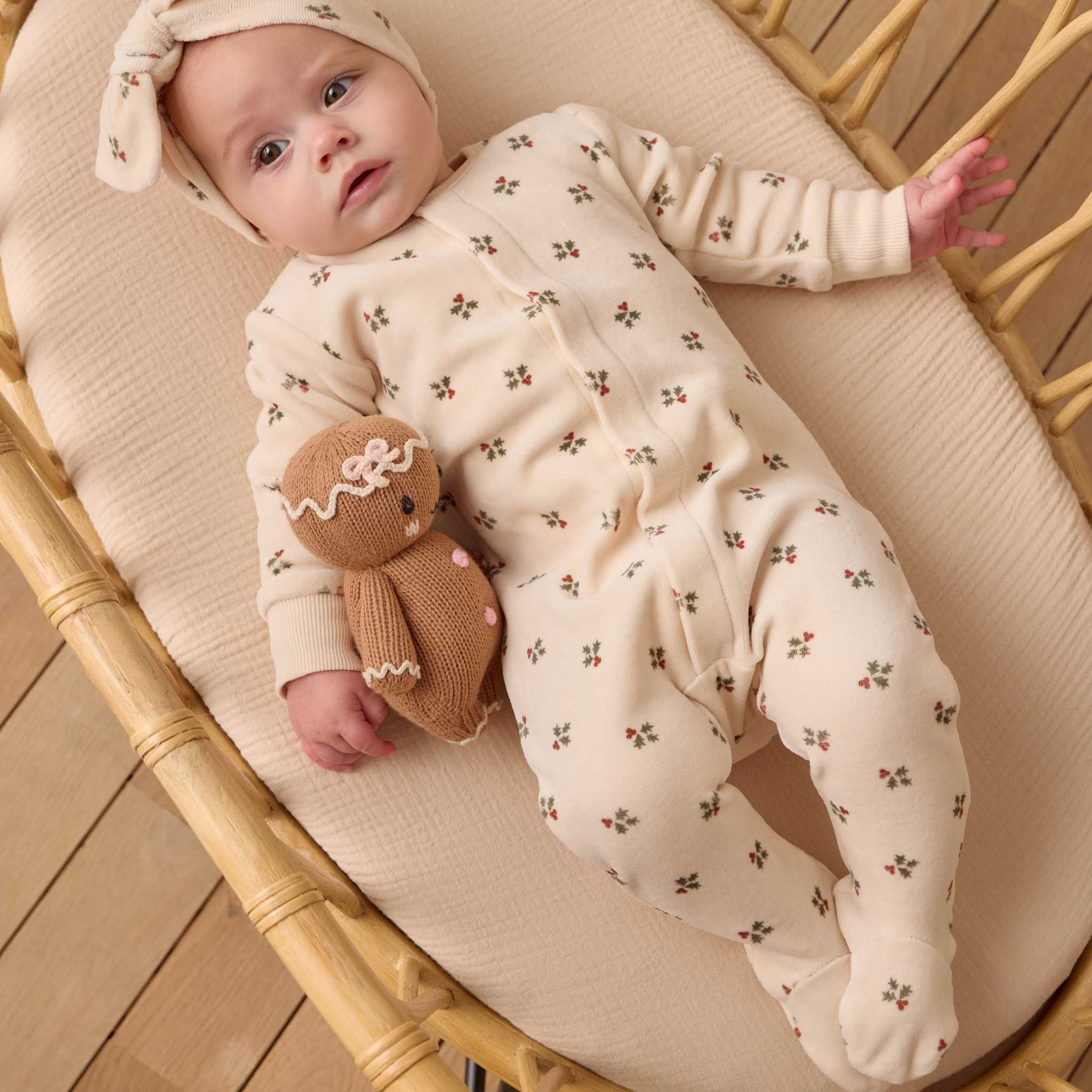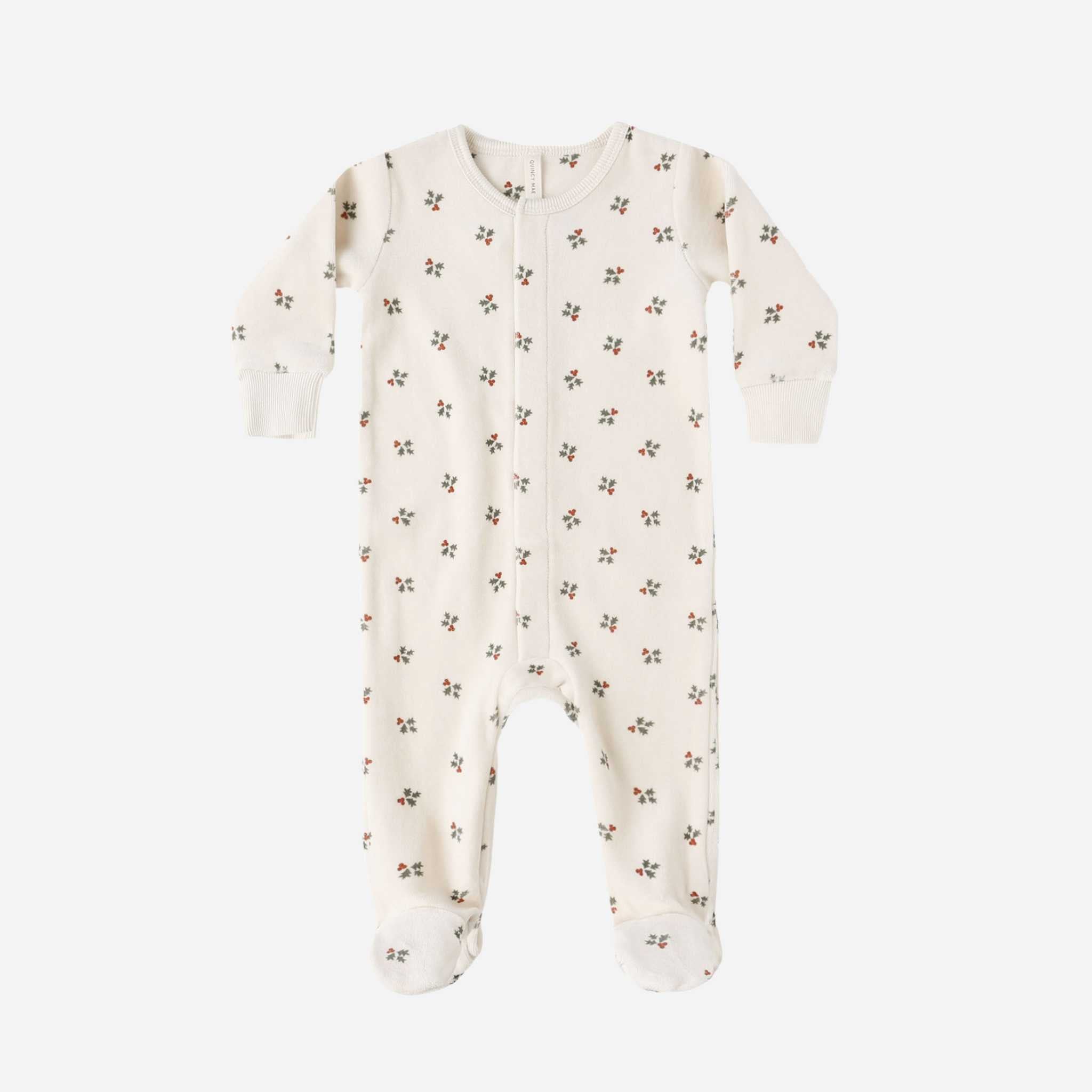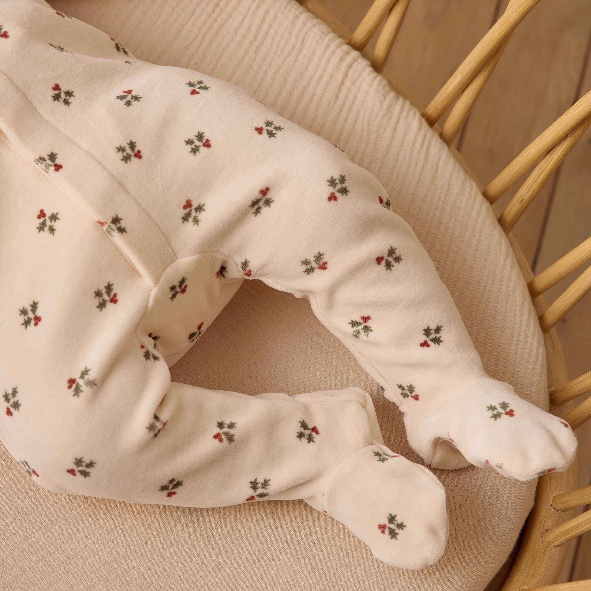 Soft, cozy, and timelessly sweet—the Hidden Snap Footie in Holly Berry keeps your little one snug through chilly days and peaceful nights. Crafted in plush organic cotton velour, it feels luxuriously gentle against delicate skin while offering warmth and breathability. Thoughtful details like the hidden snap front placket make dressing simple, and rubber dots on larger sizes help prevent slipping for little movers.