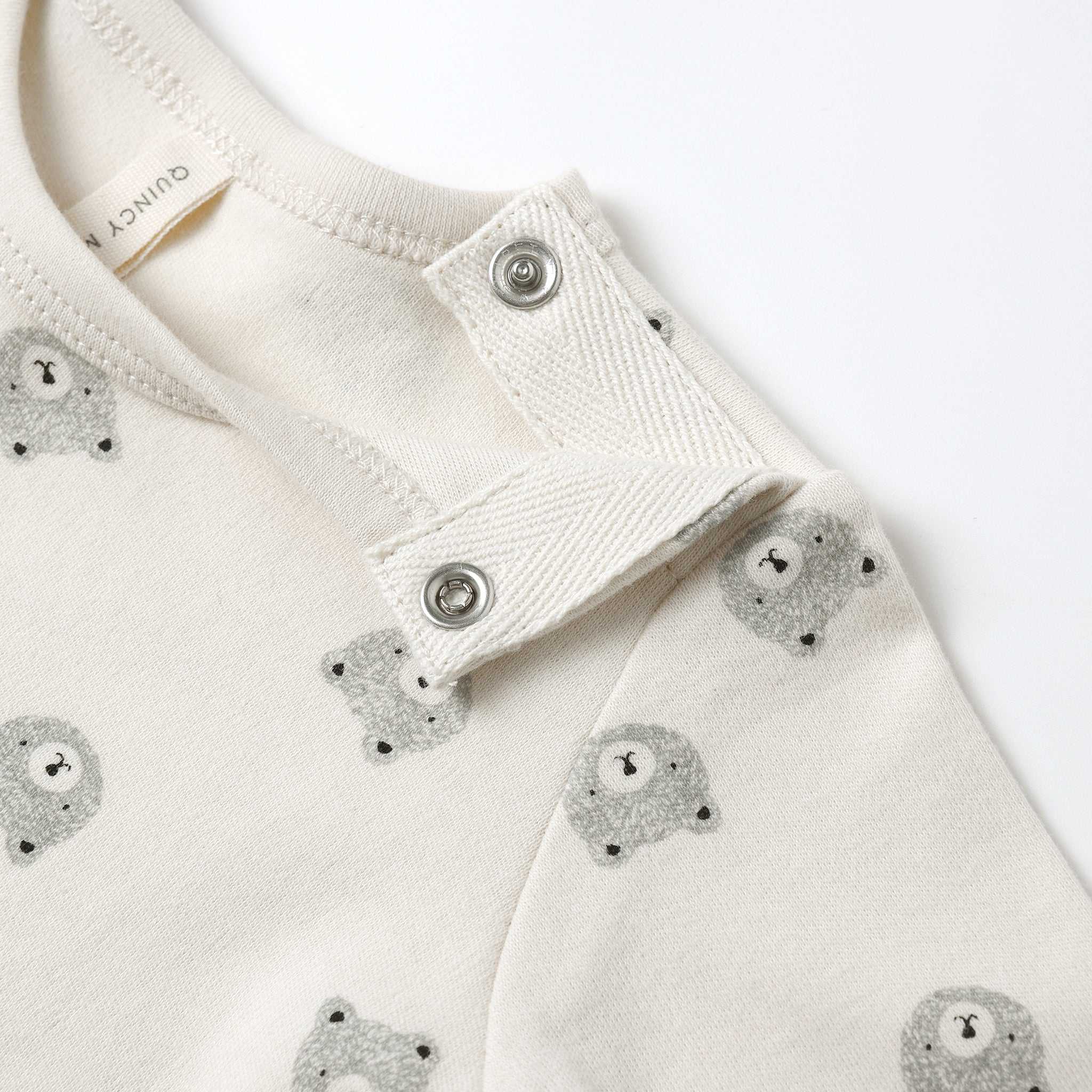 Easy changes: Convenient shoulder and bottom snaps simplify diapering and dressing.
