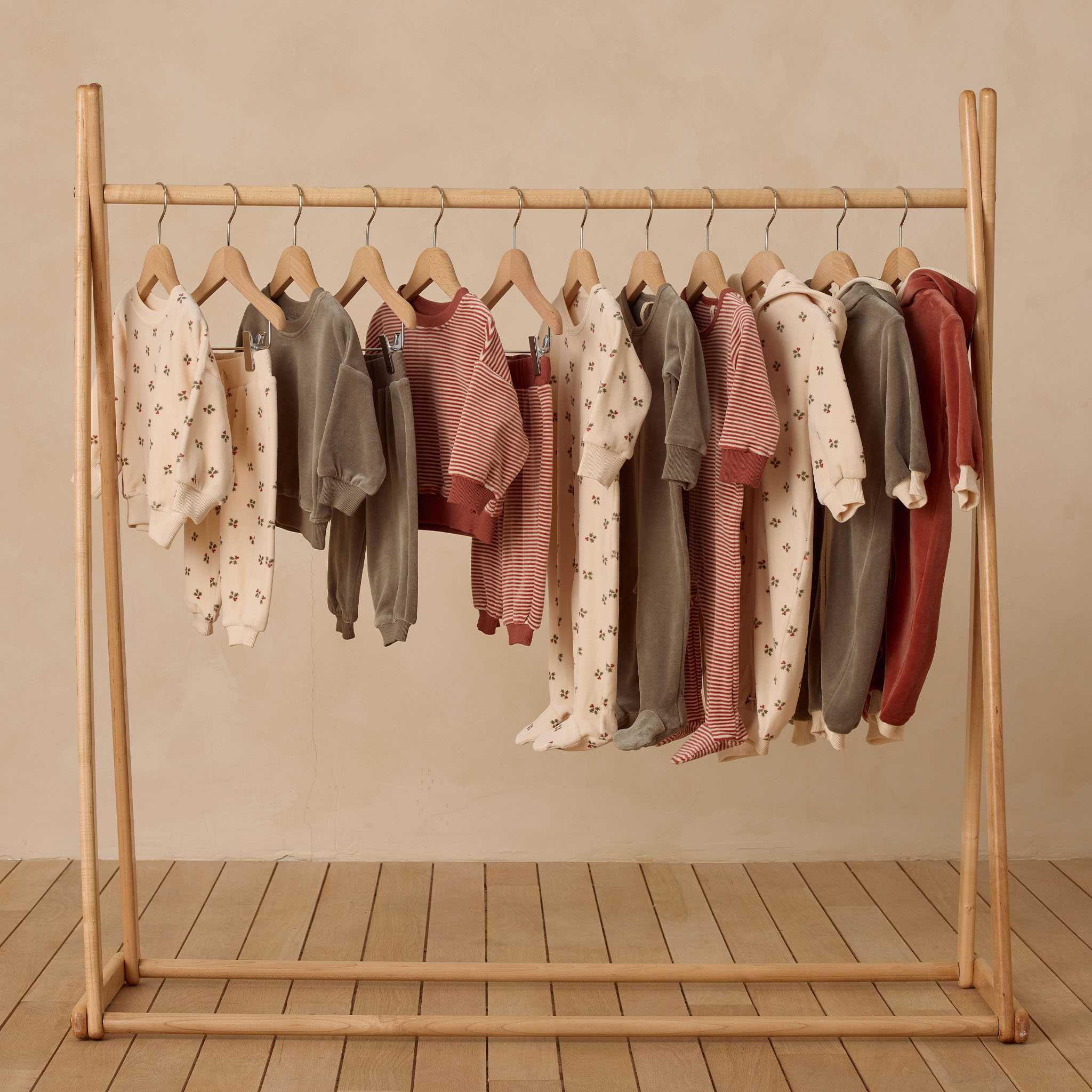 Festive pattern: Features Quincy Mae’s ‘Candy Stripe’ print on a warm ‘Cranberry’ hue—perfect for the season.