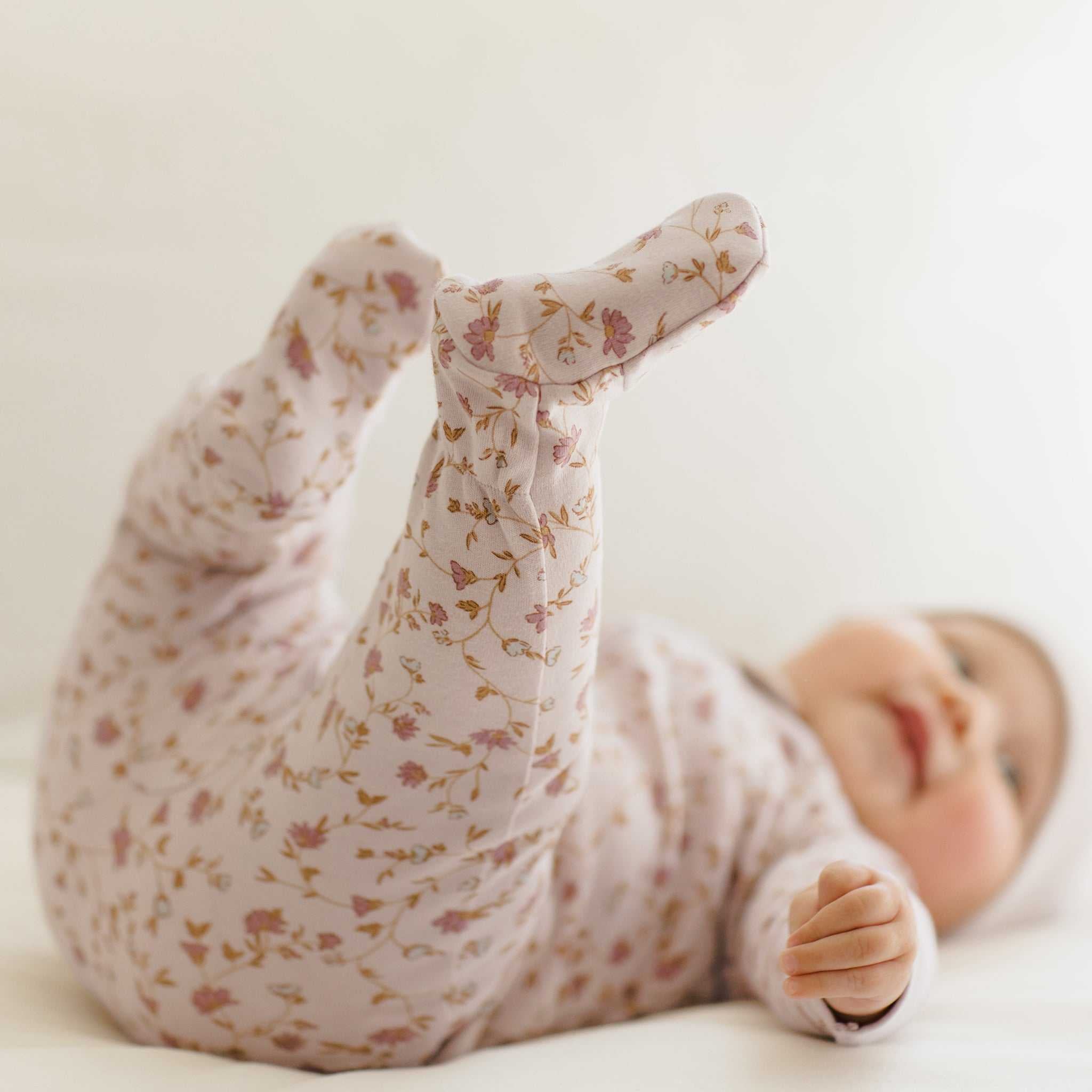 Delightful design: Sweet Garden print on soft lilac makes it an adorable addition to any baby wardrobe.