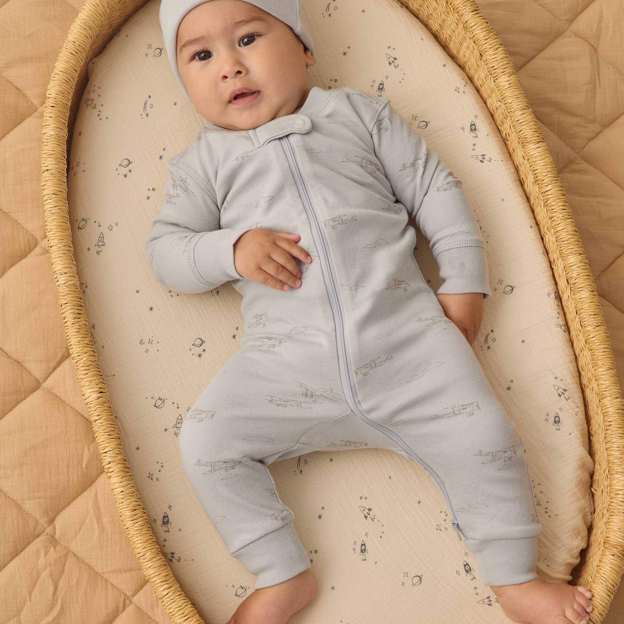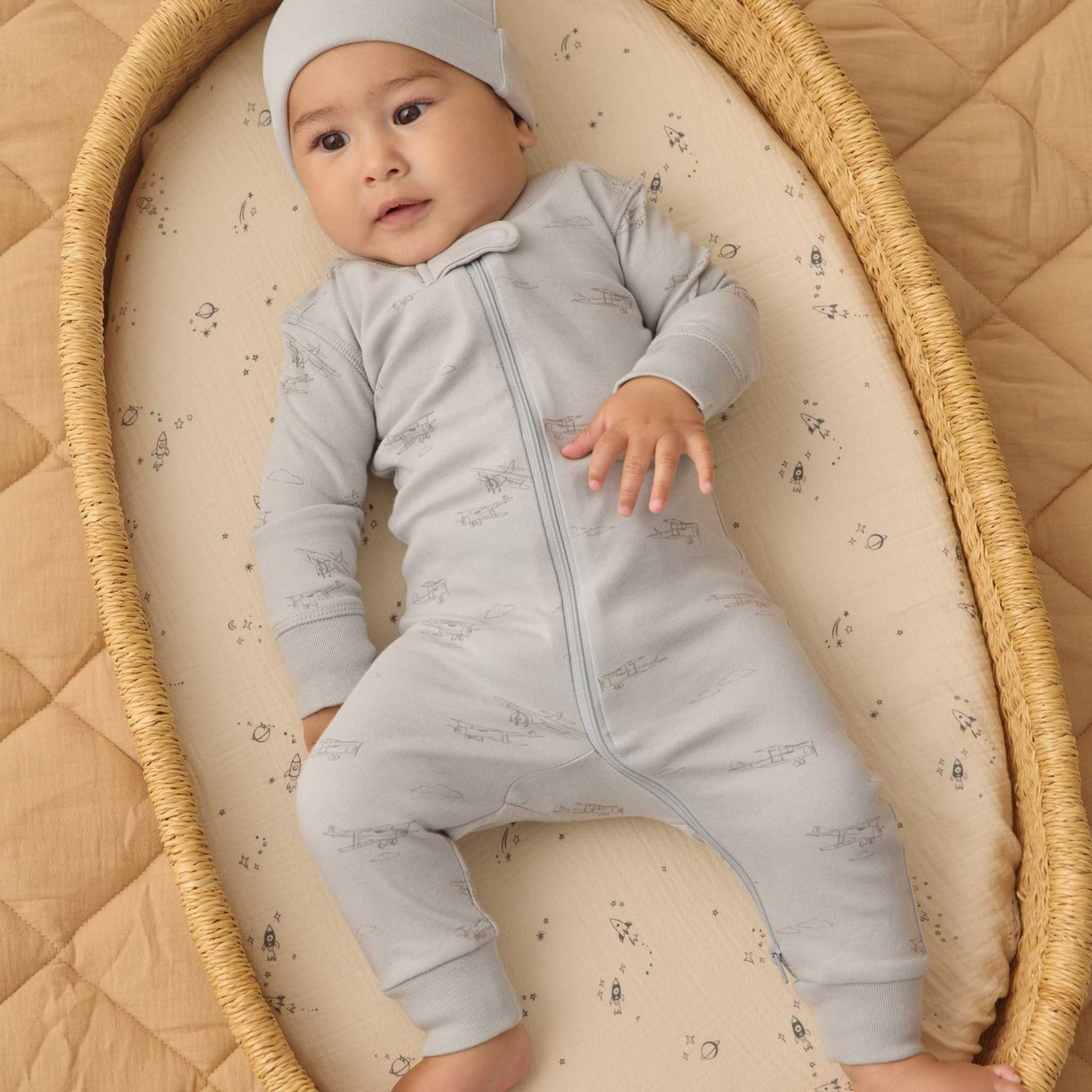 Playful Airplanes print: A charming all-over pattern that brings a sense of adventure and sweetness to bedtime.