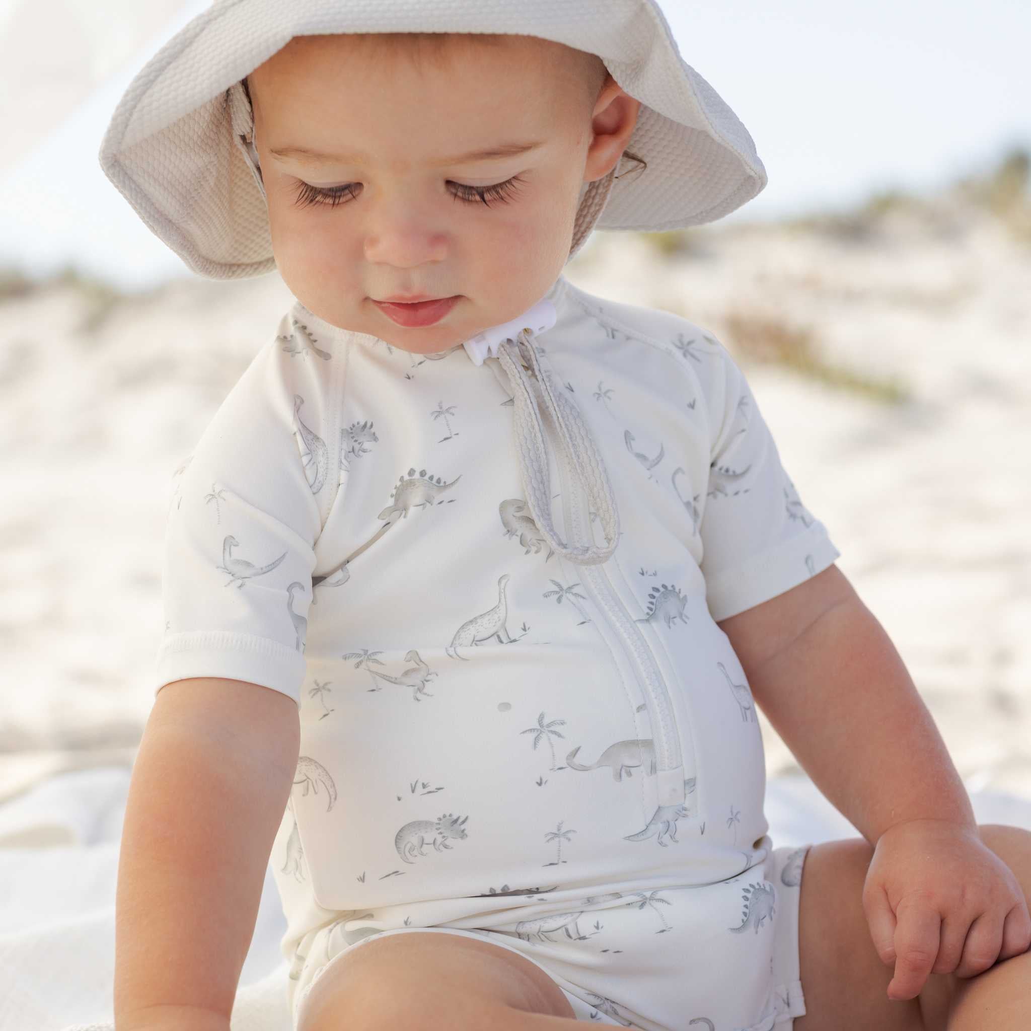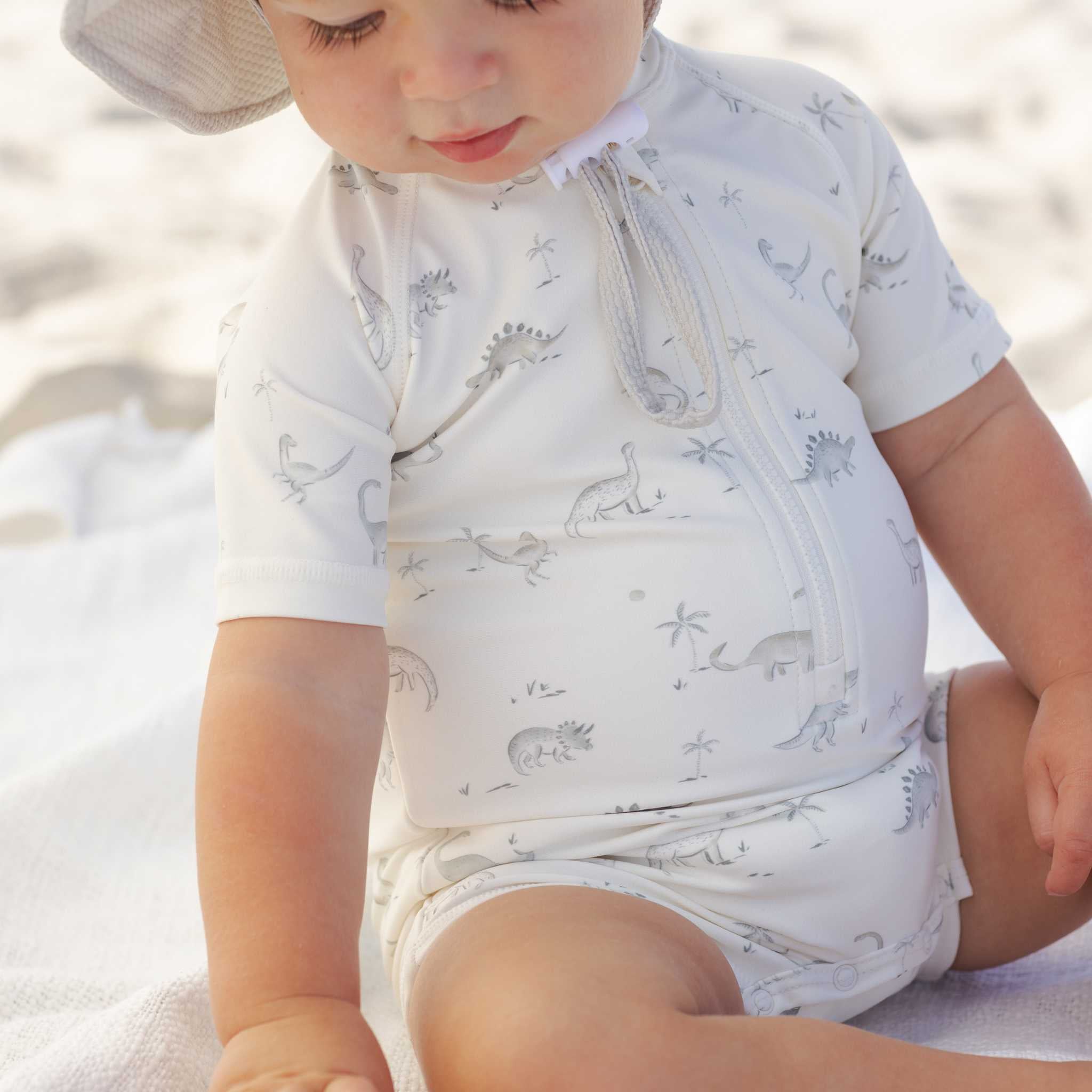 At Dearly, we love pieces like the Zip Rashguard One-Piece – Dinosaur by Quincy Mae—thoughtfully designed to balance comfort, protection, and playful style for carefree summer days and memory-making adventures.