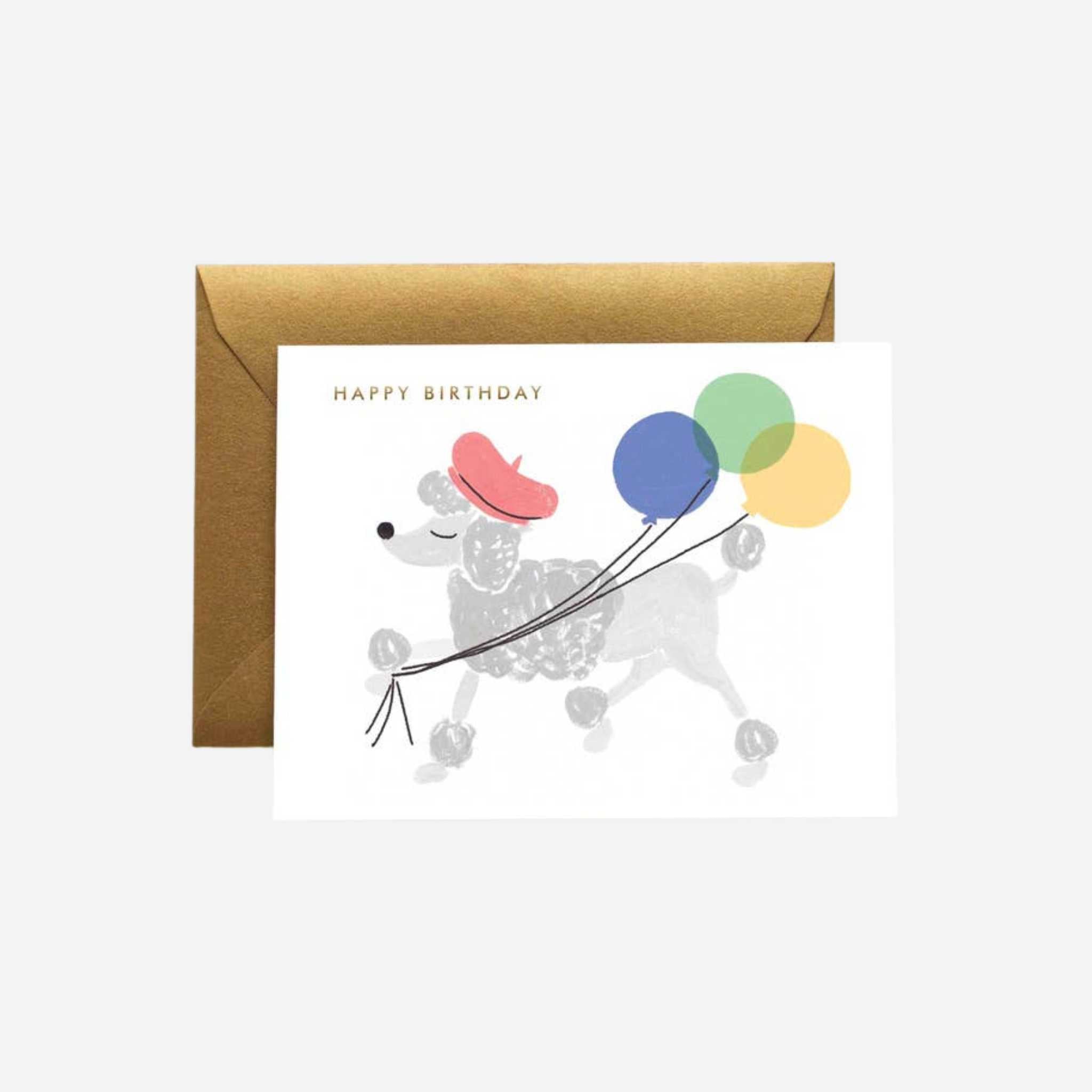 Celebrate a special birthday with this stylish and playful card featuring a charming French poodle design. The blank interior gives you plenty of space for a personal handwritten message, making it a sweet and thoughtful addition to any gift.