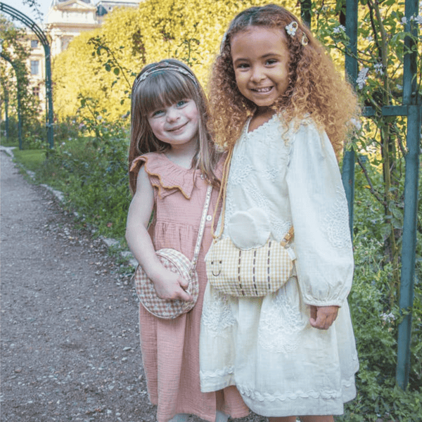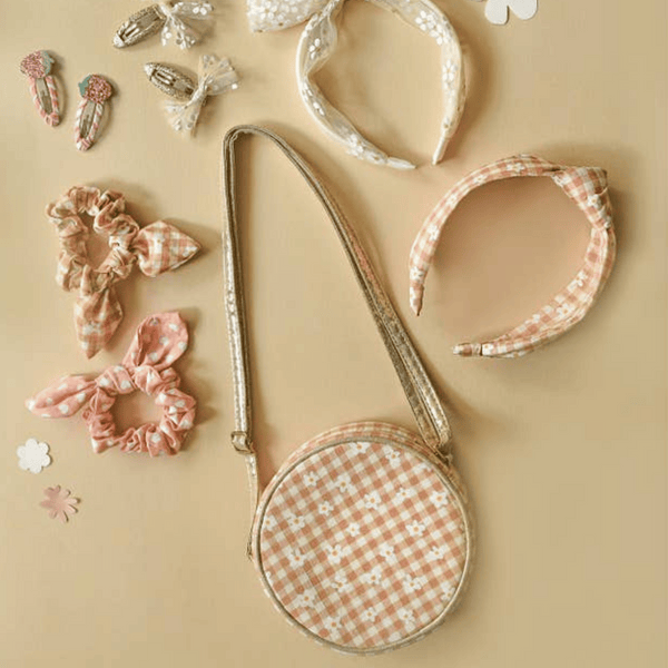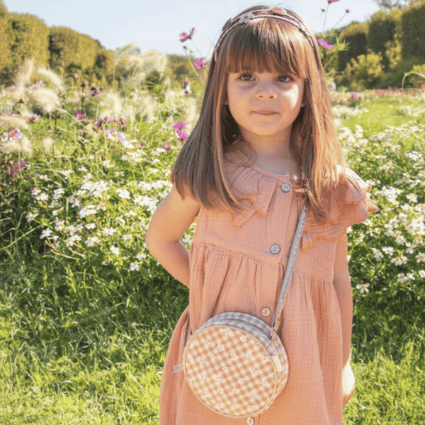 Add To BabylistBring a little sunshine wherever you go with the Daisy Gingham Round Bag! Crafted from cheerful gingham fabric and sprinkled with delicate daisies, this bag is a perfect companion for all your little one’s adventures. Whether heading to a picnic, playdate, or a special outing, it’s just the right size to store all those tiny treasures and summer essentials.