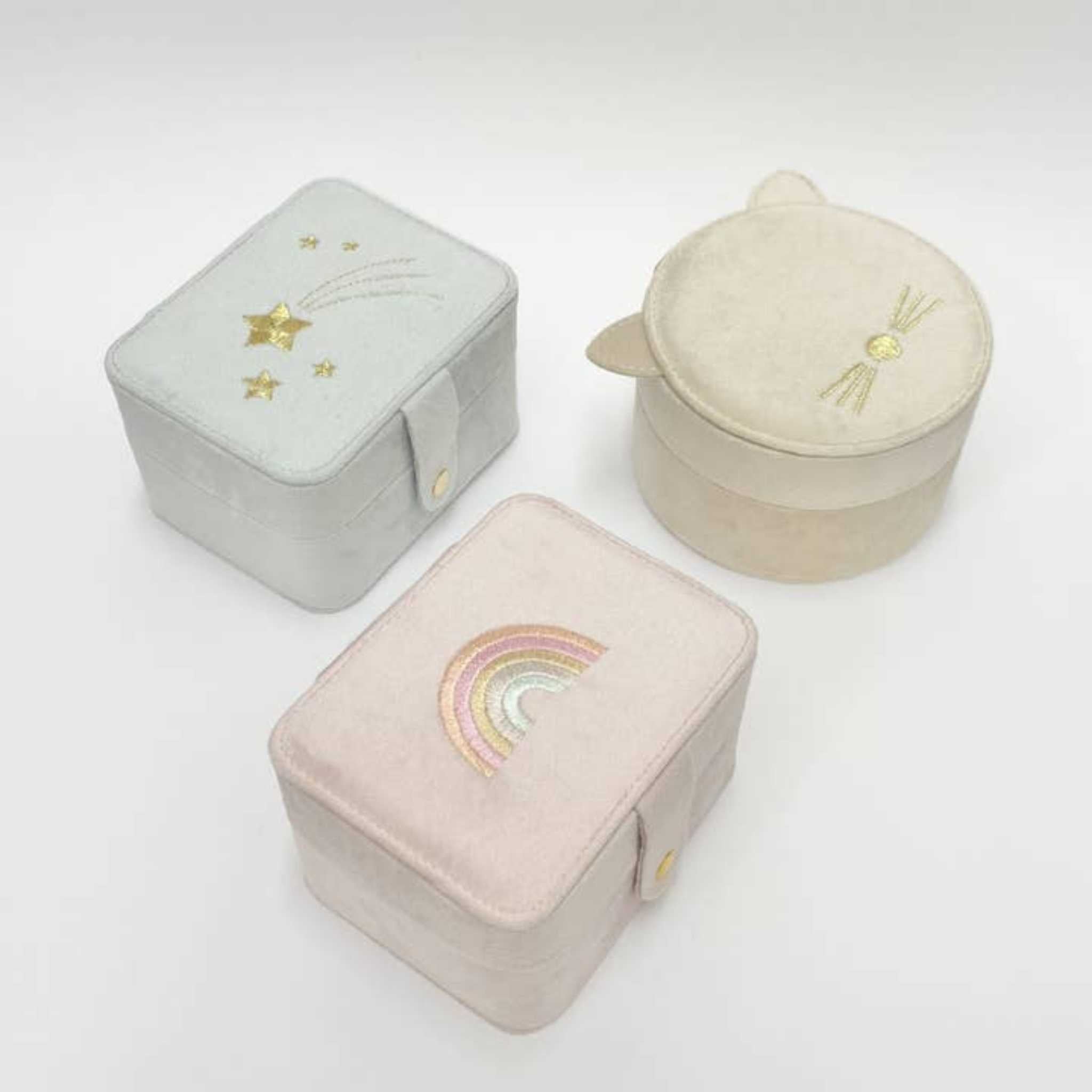 A magical little home for treasures and keepsakes. This soft velvet jewelry box is perfect for storing favorite Rockahula pieces or any special little treasures your child loves to keep close.