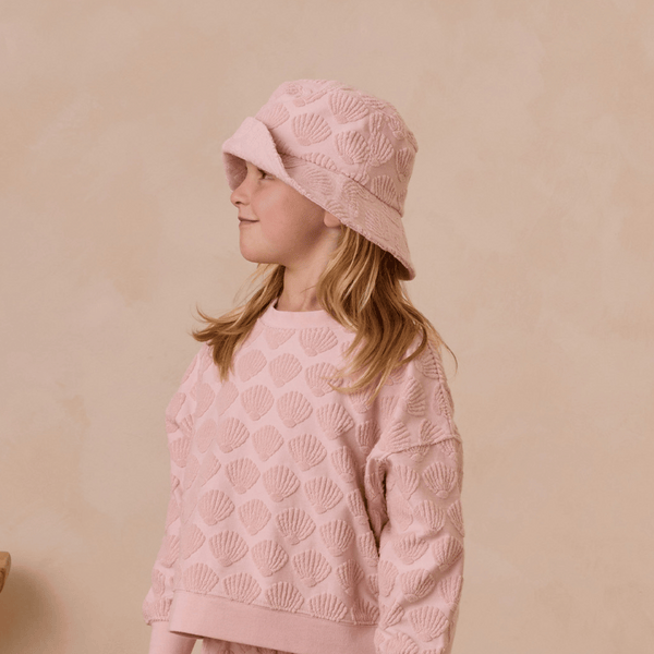 Add To BabylistA sunny-day essential, the Bucket Hat in Shells by Rylee + Cru offers stylish sun protection with a sweet, seaside-inspired touch. Made from soft and breathable cotton terry, this hat features a delicate pink shell print, perfectly coordinating with other terry styles in the Shells collection.