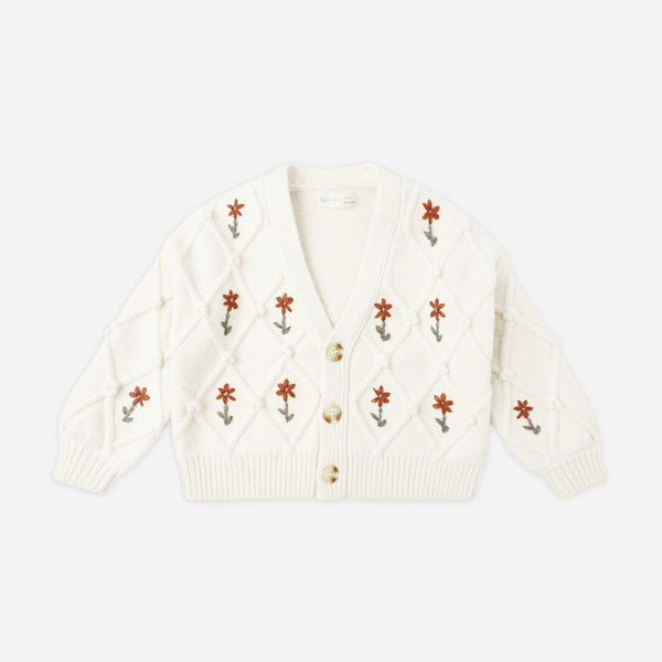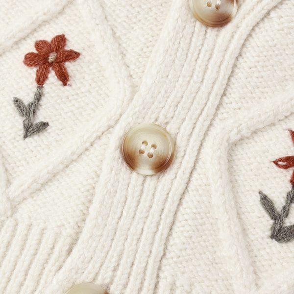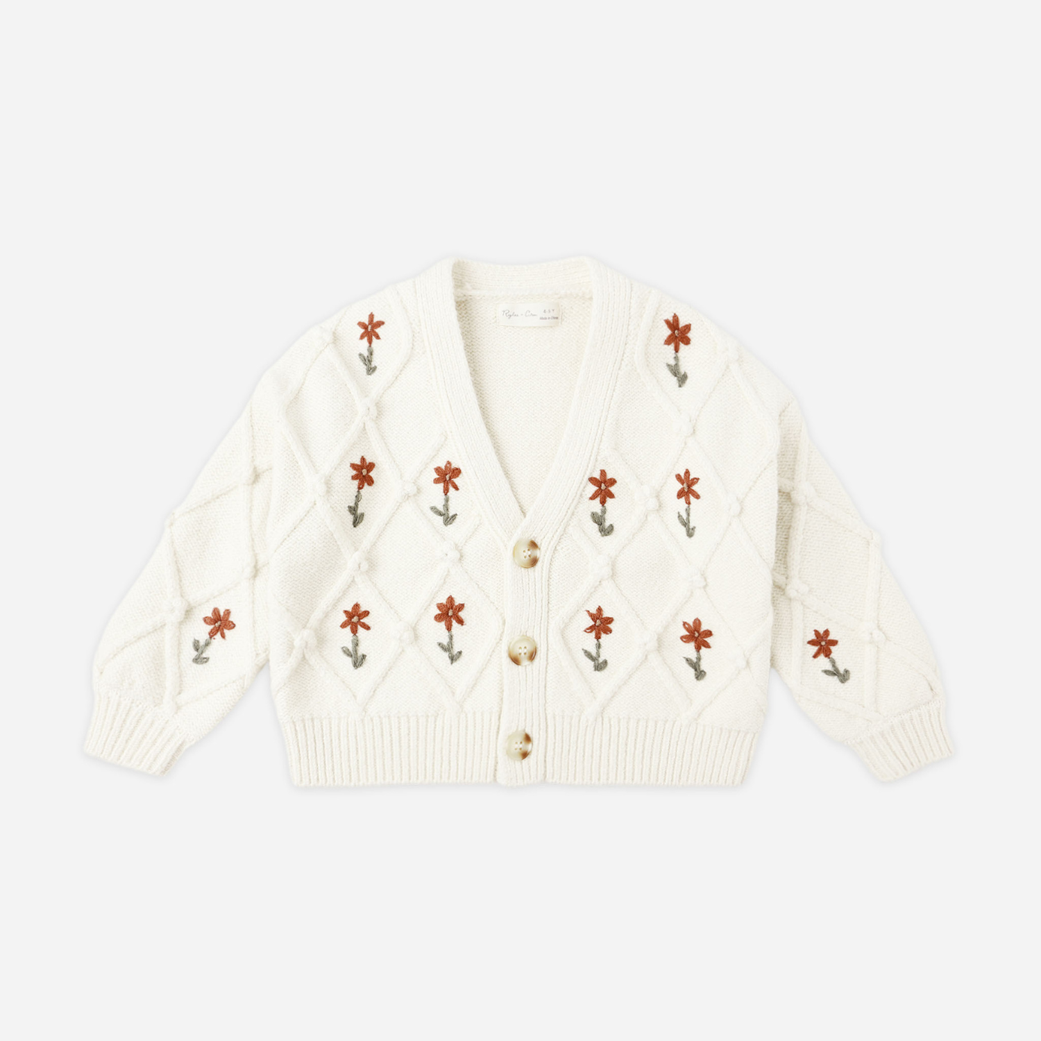 Boxy Crop Cardigan - Winter Daisy Embroidery