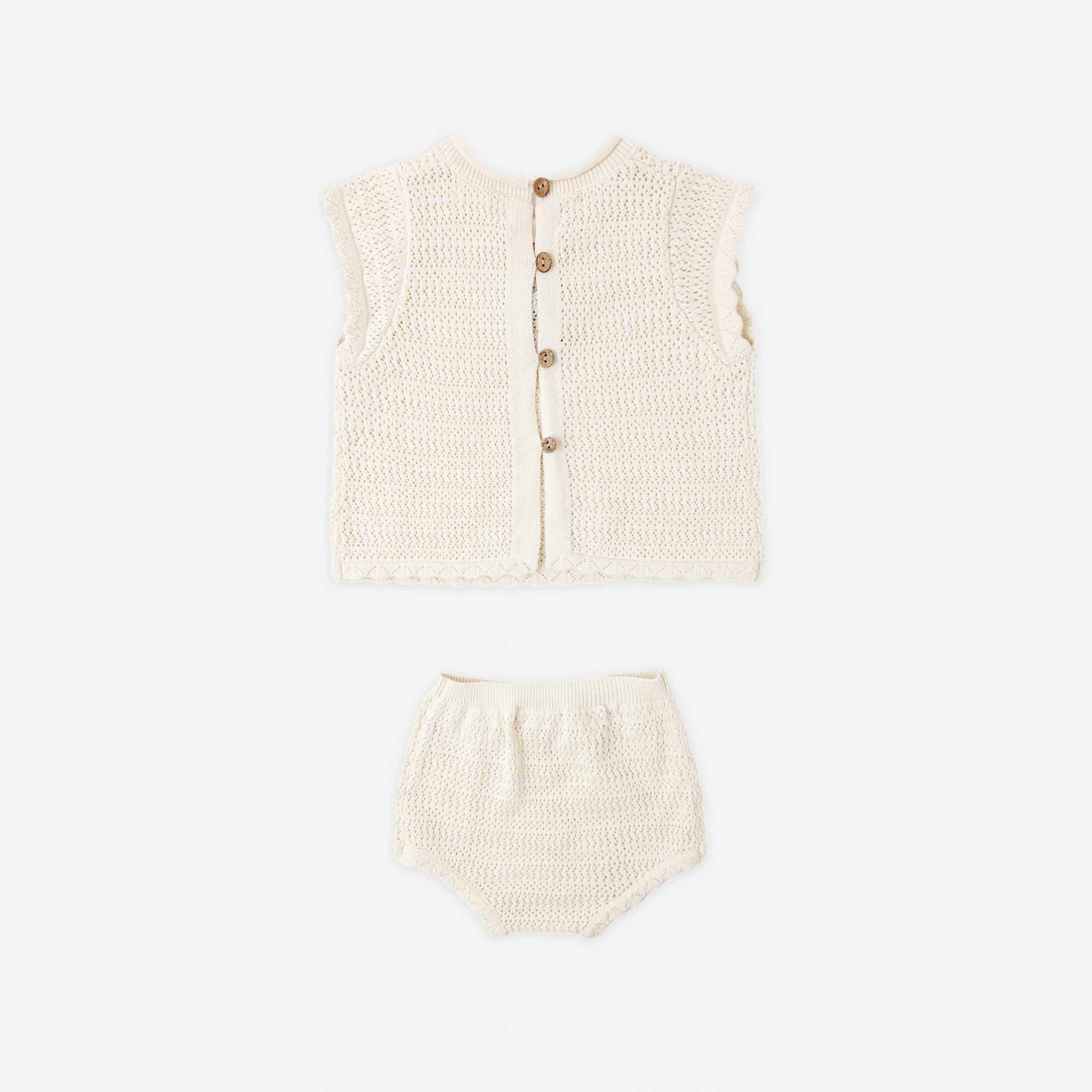 Sweet, soft, and effortlessly timeless, the Scallop Knit Baby Set is a warm-weather favorite designed to keep little ones comfortable, stylish, and ready for sunny adventures. Thoughtfully crafted from breathable pointelle cotton, this set combines charming details with easy, everyday wear—perfect for playdates, family gatherings, or simply lounging in the sun.