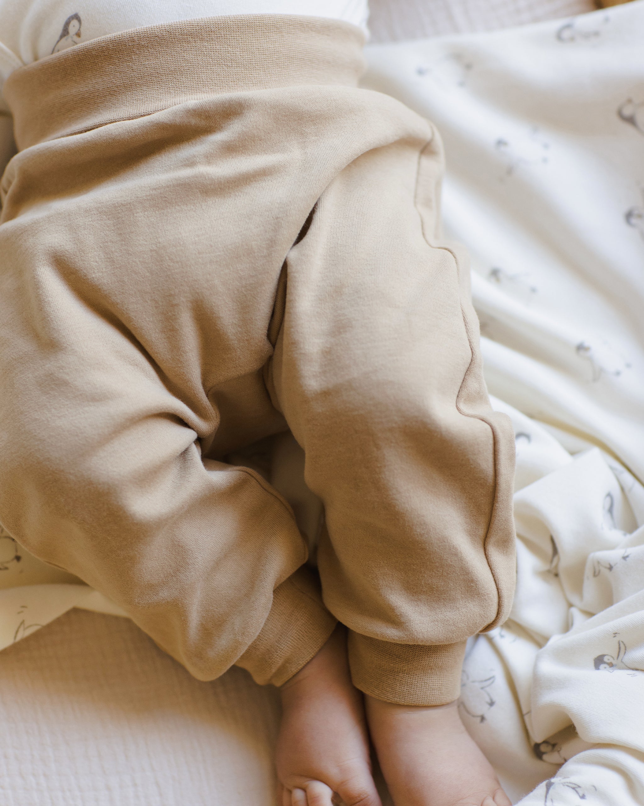 Matching pants with roll-over ribbed waistband + ribbed cuffs