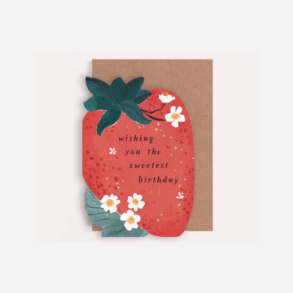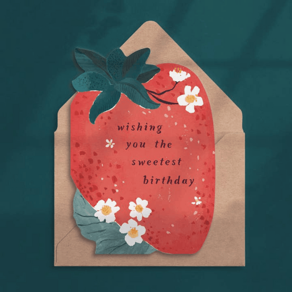 Add To BabylistCelebrate someone who’s truly berry sweet with this bright and cheerful strawberry-shaped birthday card. With its hand-lettered message, “wishing you the sweetest birthday,” this adorable card is a tasty treat that’s ready to brighten any celebration.