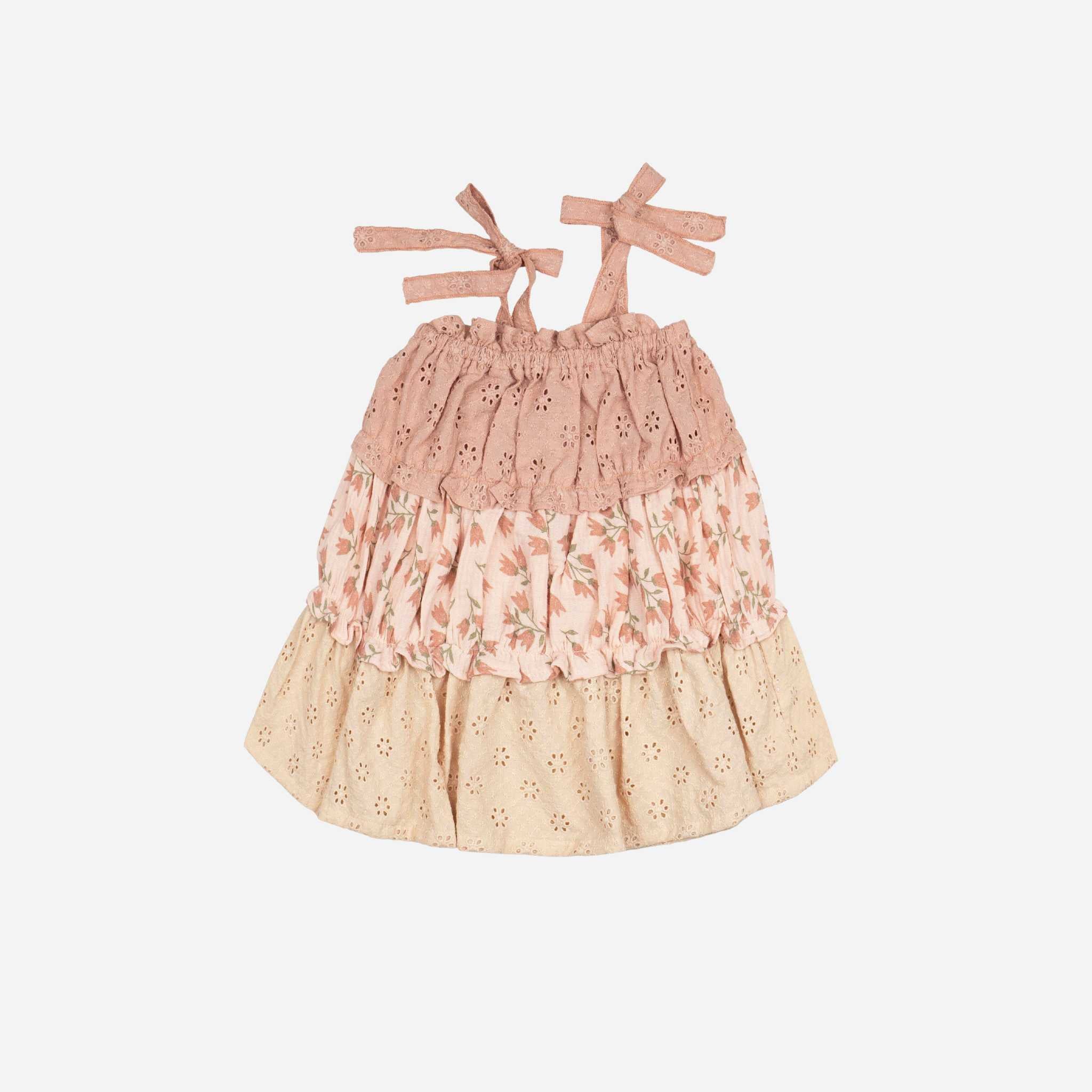 Thoughtful details: Adjustable tie straps and broderie anglaise tiers add beauty and practicality.